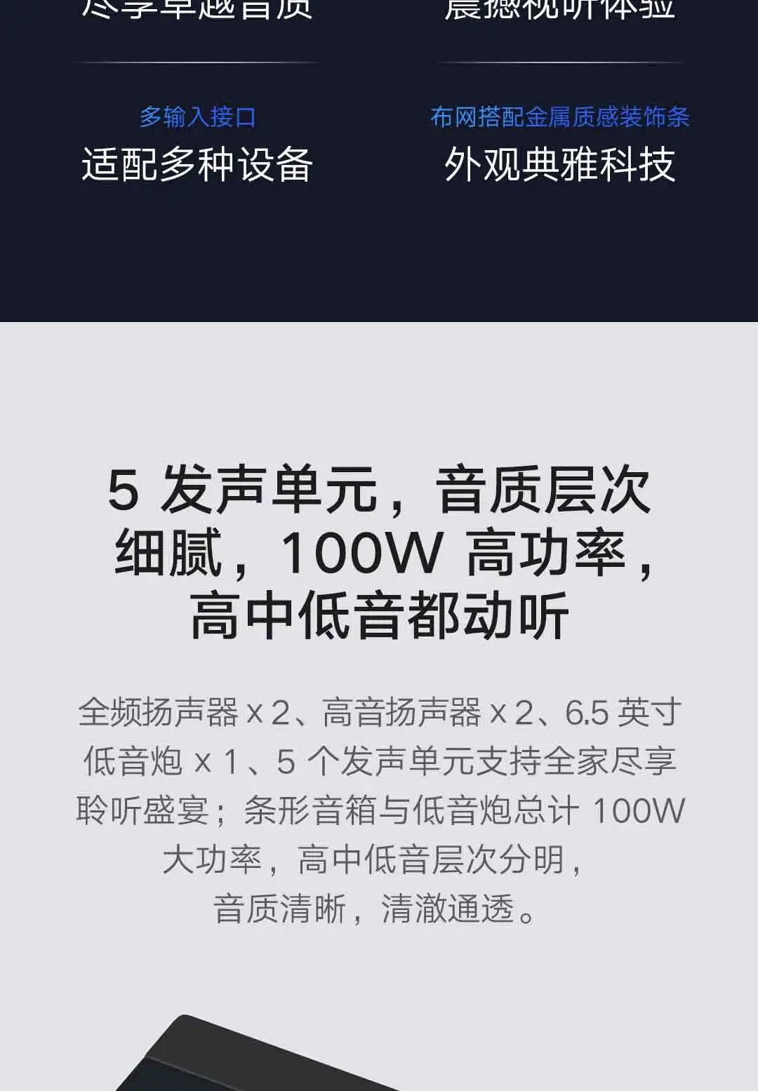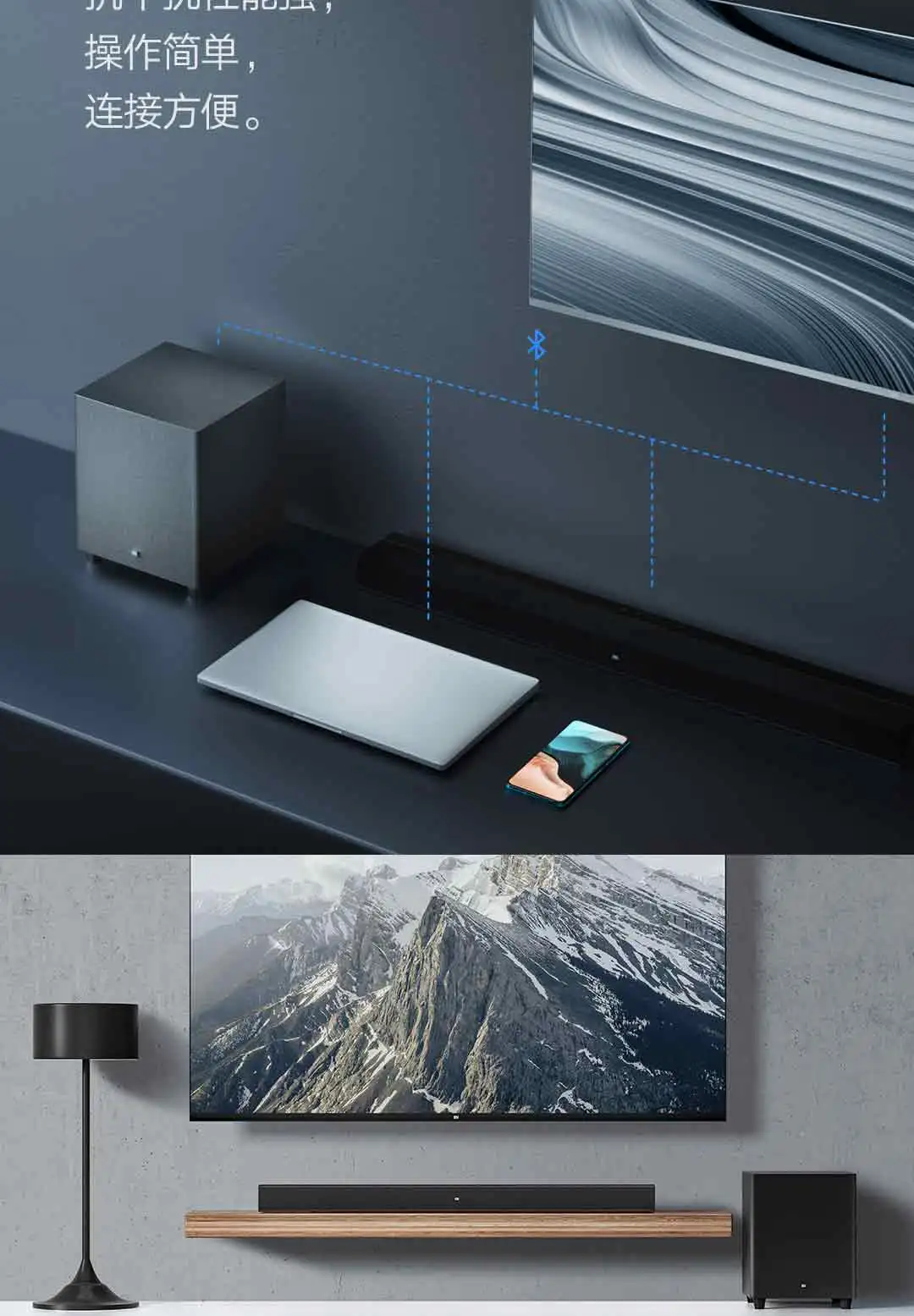 Xiaomi TV Speaker Cinema Версия 2,1 канальный алюминиевый сплав мульти-входной интерфейс 100 Вт Режим питания Cinema независимый сабвуфер