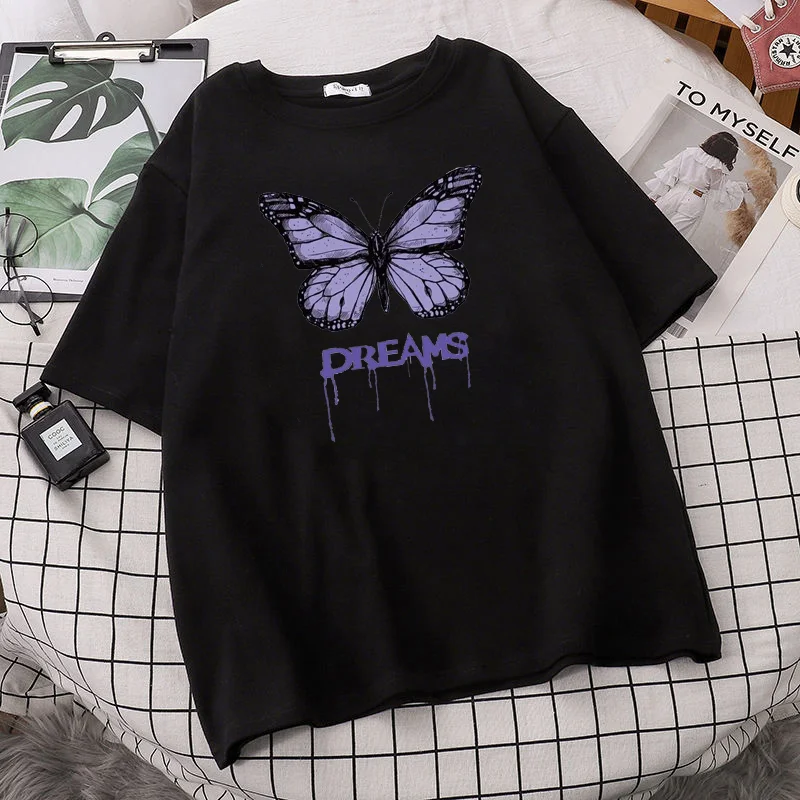 Отзывы о Летняя Готическая эстетичная Свободная Женская футболка с принтом фиолетовых