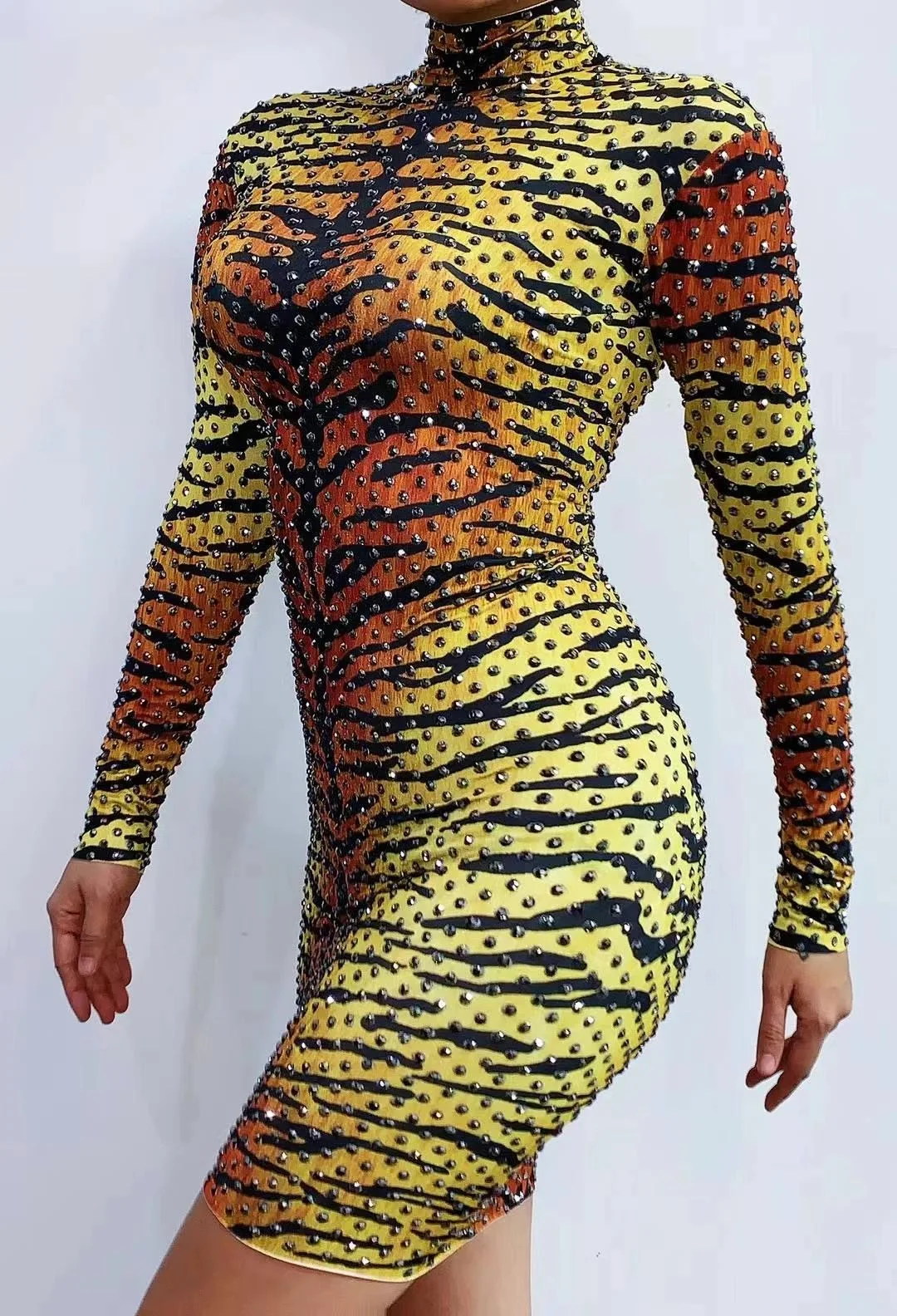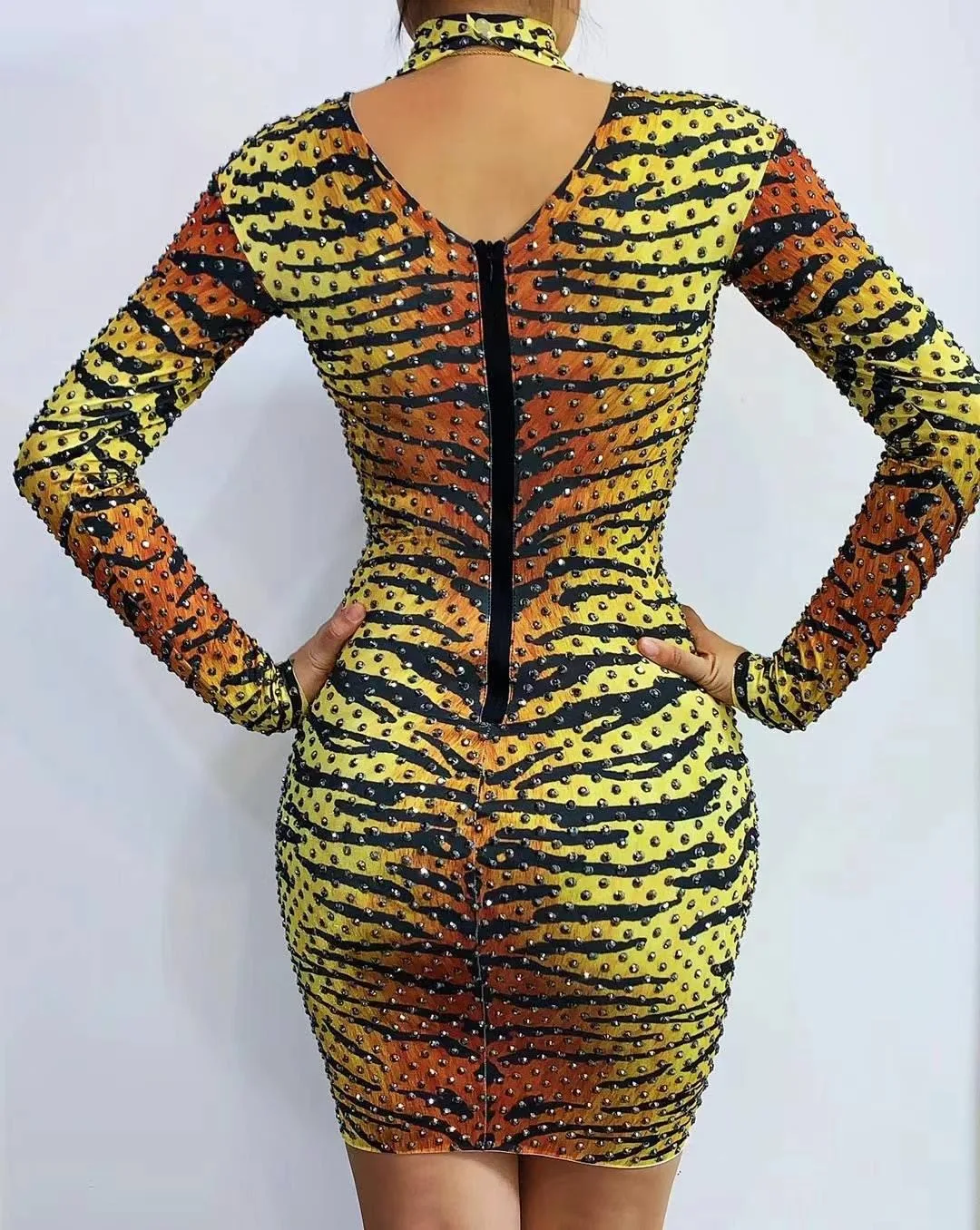 Отзывы о Женское платье с тигровым принтом и стразами короткое эластичное