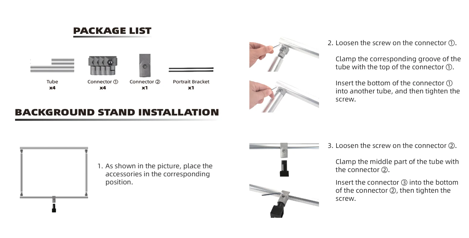 3. Фоновая рамка(50 см * 100 см): Стандартный тип и расширенная версия все не включают эти аксессуары, если вы хотите, пожалуйста, свяжитесь с нами, цена такая: (Не включает)
