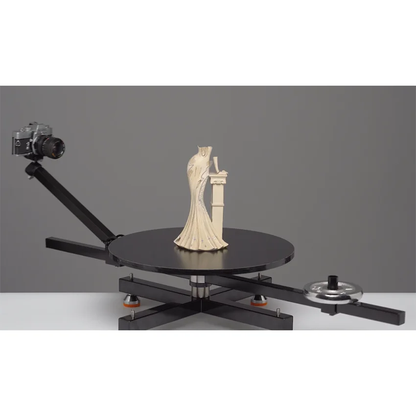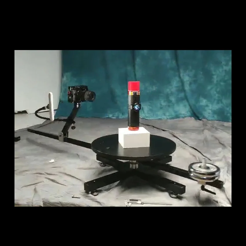 Правильно, я такой же фотограф, как и вы, потому что я всегда был недоволен эффектом объемной съемки. Объект, который был снят на предыдущий поворотный стол, вращался, было очень трудно найти центр, и я не мог снимать большие предметы или людей, поэтому у меня есть своя идея окружить стол съемки.