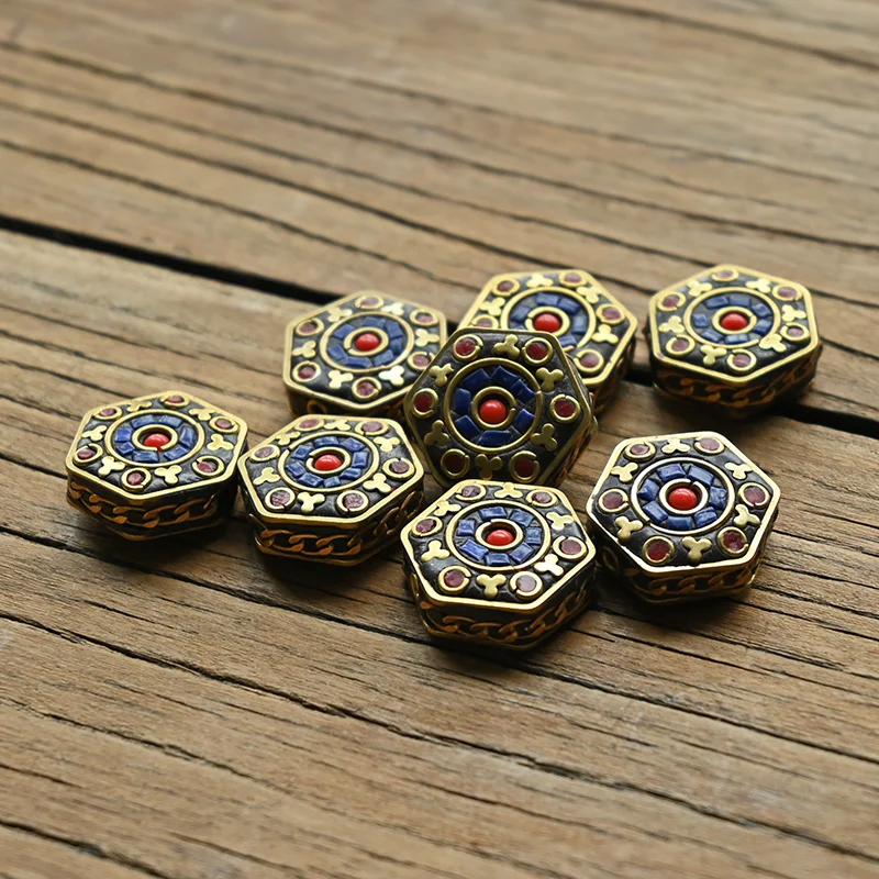 Античный непальский шестиугольный латунный браслет TZB02 ручной работы с - купить