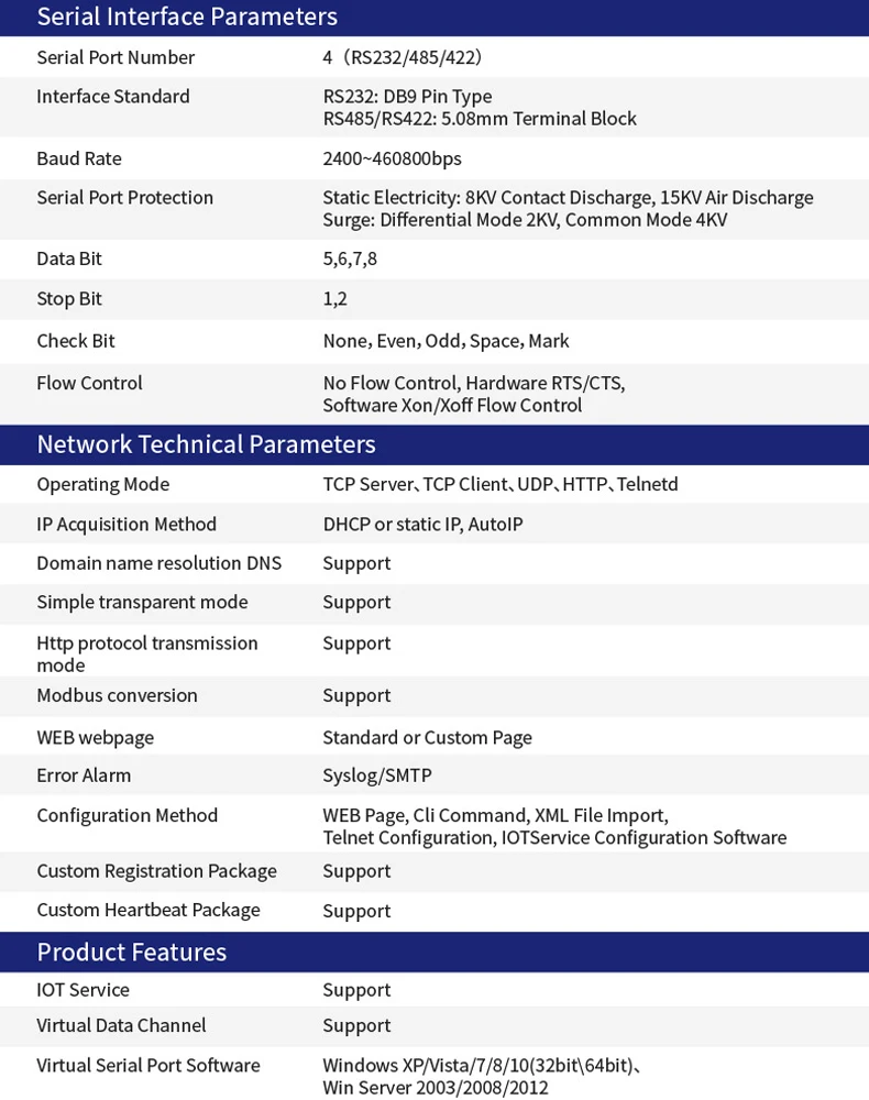 Support поддержка последовательного преобразования 10/100M Ethernet, последовательная скорость до 921600 bps