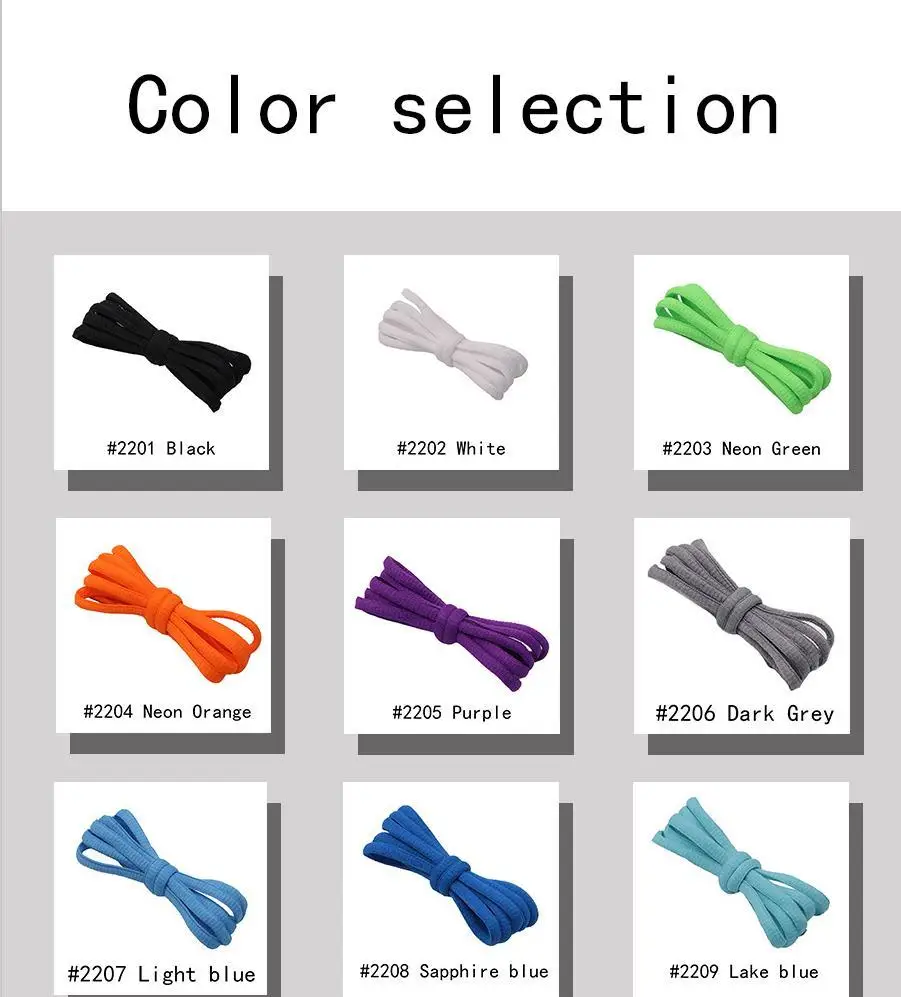 Item No.:#2204/2217/2218/2232/2233/2234/2235 Material:Polyester+Plastic Function/Colloction/Application:Shoestrings,Waist Laces,Hat Ropes etc Colour/Multicolor Combination:Solid Color, 7 Coulors For Selection Specification:60-180 cm * 0.6 cm Diameter/Width:6 mm Shape Type:Oval Type Shoelaces Head:Transparent Plastic Gross Weight:45 g Certificate:Oeko-tex-100,ISO9001,SGS,CE Package:1 pair/opp polybag Customized:Color Collocation/Lenth&Width/Logo Print,Please Contact Our Customer Service