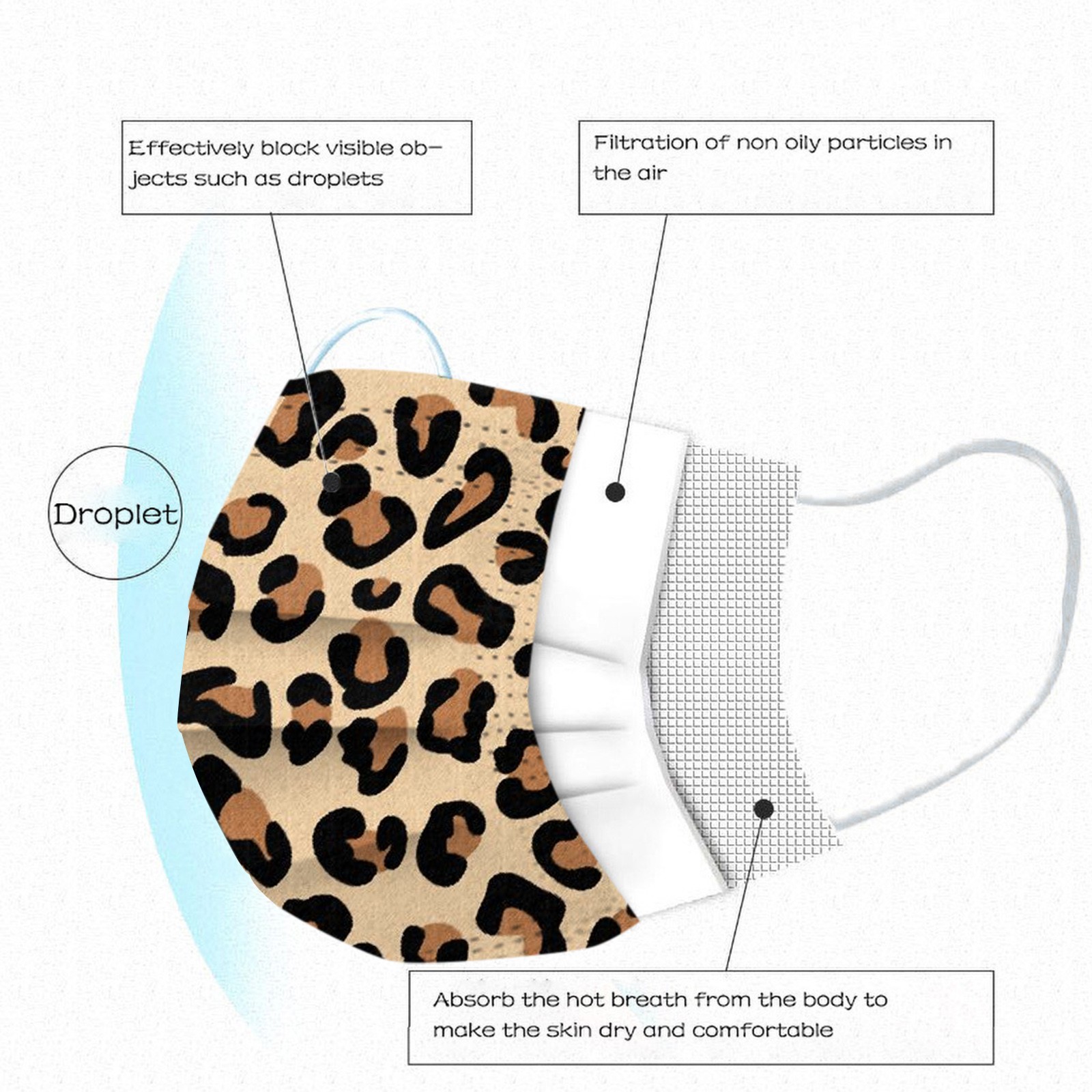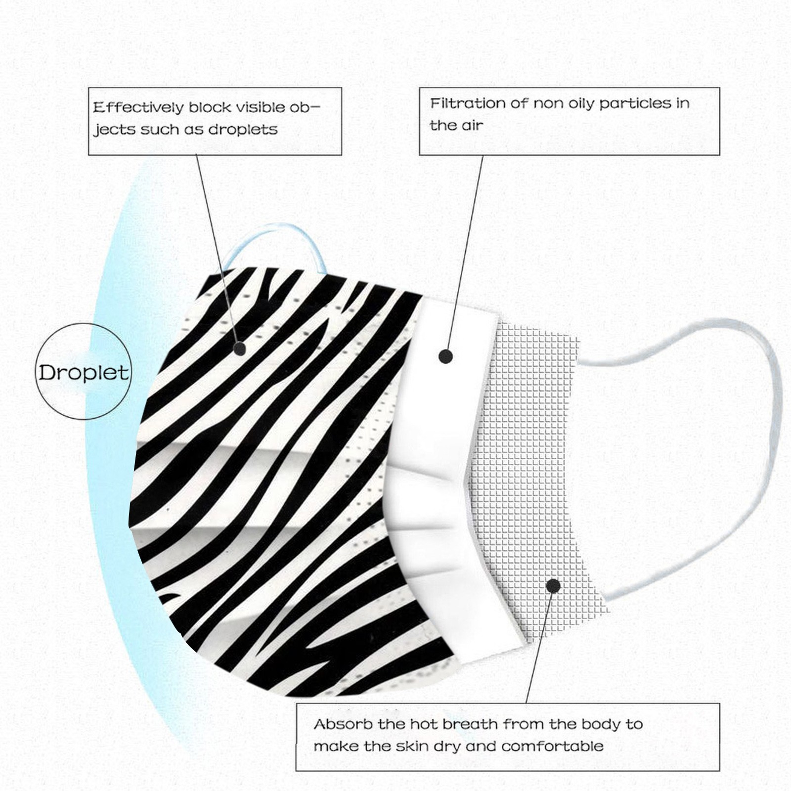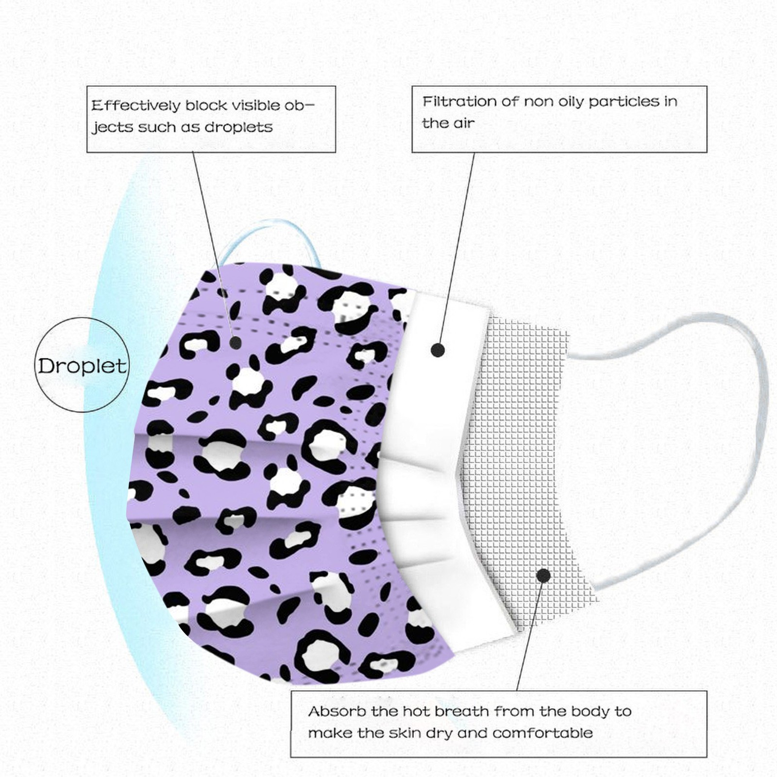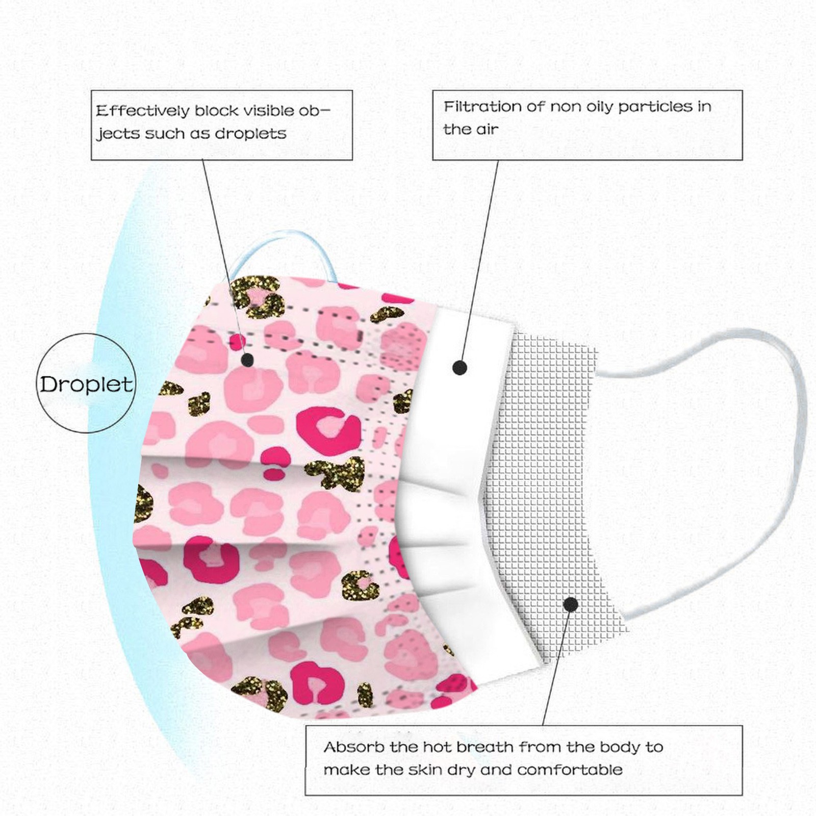 3 слояОдноразовая маска изготовлена из 3 слоев гидросплетенная ткань для тканевого материала,Он безопасен и безопасен для использования. Дышащий материал и милые узоры, что делает его полезным и модным. Специальный 3 слоя из нетканого материала, дизайн, обеспечивает некоторые меры защиты от пыли, автомобильный отходящий газ, пыльцу и т. Д. Эластичная петля уха позволяет легко снимать и надевать цепочку и не давит на уши. Маникюрный салон или любые другие области, где может потребоваться защита