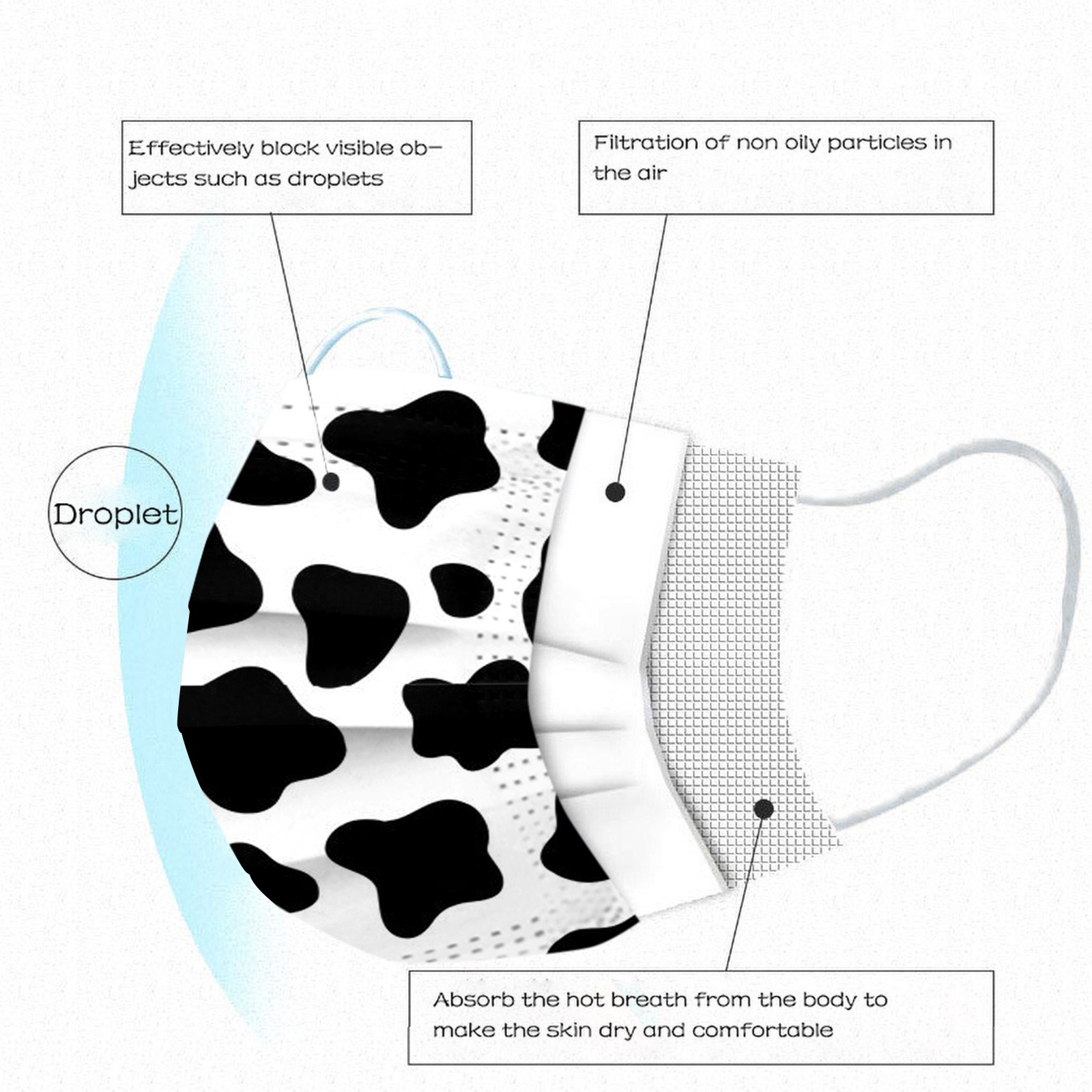 Одноразовая маска для взрослых с принтом молока коровы Пылезащитная 3-слойная - купить