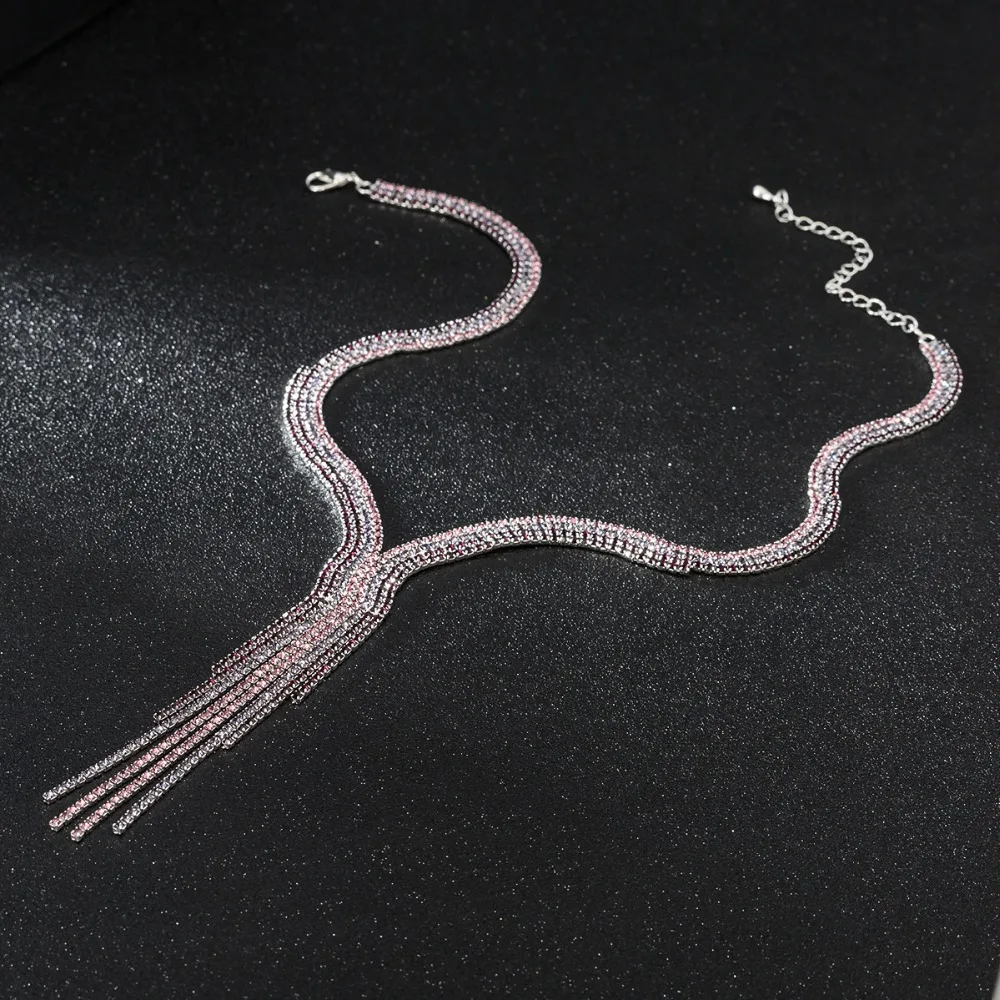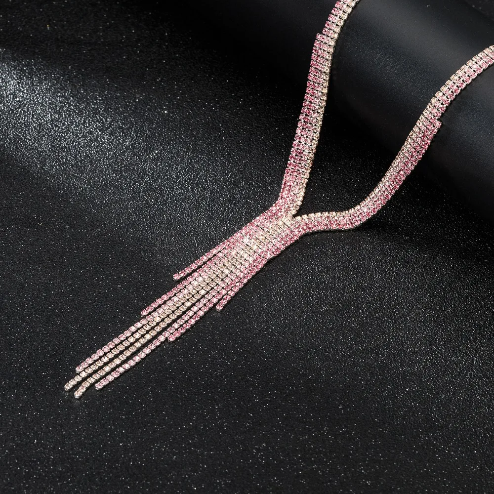 Зеленое розовое фиолетовое ожерелье с кисточками и посеребренными кристаллами - купить