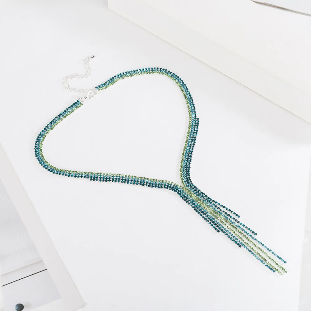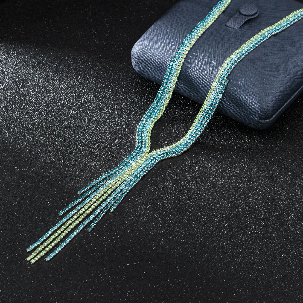 Отзывы о Зеленое розовое фиолетовое ожерелье с кисточками и посеребренными кристаллами