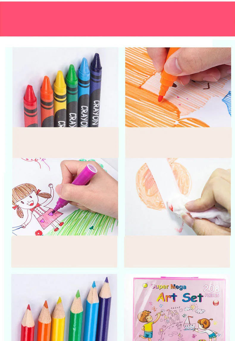Отзывы о Набор из 208 цветных карандашей маркеров и кистей для рисования детей акварели