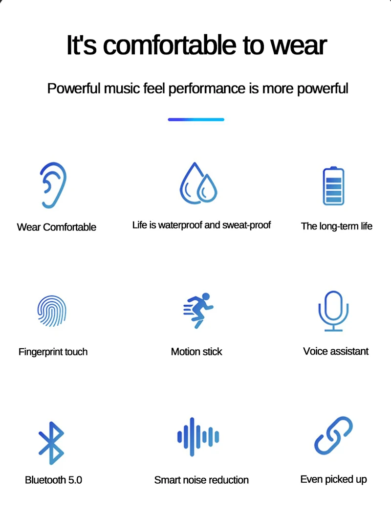 | Характеристики продукта:1. Чип Bluetooth 5,0 второго поколения2 светодиодный светодиодная Кнопка умный крутой3. 9D стерео HIFI бас объемный4. Динамик с графеновой пленкой5. Магнитная Выдвижная зарядная коробка6. Эргономичный дизайн; Не упадет при ношении на ухо7. Водонепроницаемость; Неважно, потеет ли в спортзале или занятия спортом на открытом воздухе под дождем, это не повредит наушники.8. Поддержка одиночного/бинаурального использования (левый и правый наушники имеют встроенные микрофоны для независимых голосовых вызовов)9. Эргономичная головка наушников с мягкими наушниками из натурального силикона не вызовет боли в ушах и других плохих условий, даже если вы носите наушники в течение длительного времени.Параметры продукта:Наименование товара: B9-TWSВерсия Bluetooth: Bluetooth 5,0 второго поколенияПродолжительность музыки/звонка: 3 часаЗарядный блок может зарядить гарнитуру: 4-5 разЕмкость зарядного устройства: полимерный литиевый аккумулятор 300 мАчЕмкость наушников на одно ухо: полимерный литиевый аккумулятор 60 мАчЧувствительность: 120 дБИмпеданс: 32ΩРасстояние передачи Bluetooth: 10 метровНапряжение зарядки: 3,7 вДекодер Bluetooth: ACCПосылкаB9-TWS Bluetooth-гарнитура * 2 (левое и правое уши)Зарядное устройство * 1Наушники из натурального силикона * 3 пары (большие/Средние/маленькие)Руководство по эксплуатации * 1USB-кабель для зарядки * 1 Примечание: Мы поддерживаем оптовые и розничные продажи и прямые поставки! Когда вы делаете оптовую продажу в нашем магазине, вы можете смешать все товары в нашем магазине! Вы можете запросить предложение всех товаров, которые вы хотите бесплатно! Желаем вам приятных покупок здесь! |