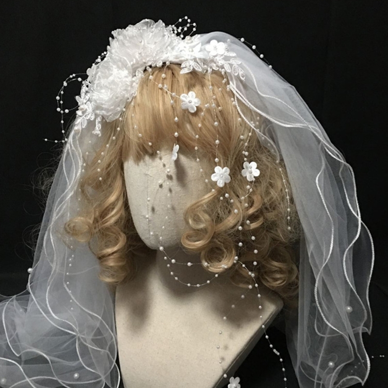 Многослойные, сказочные искусственные цветы и имитация жемчуга, украшенные бисером, простой белый цвет.