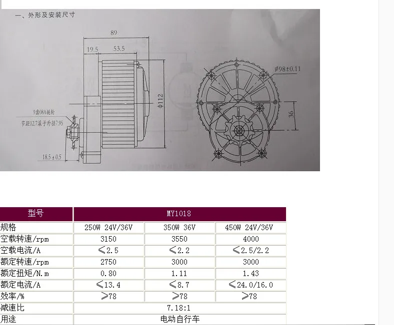Отзывы о Электрический велосипедный аксессуар: постоянный магнитный двигатель с щетками и редуктором MY1018-450W/24V/36V Мотор
