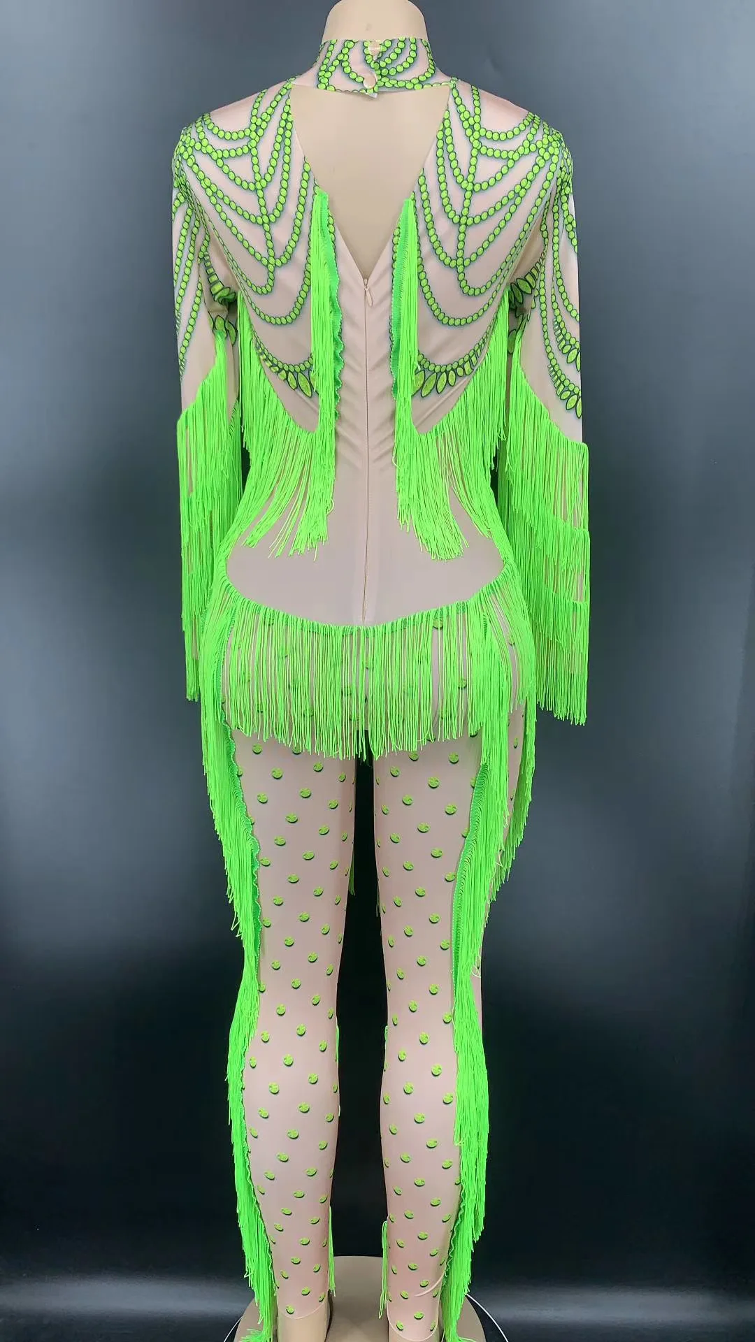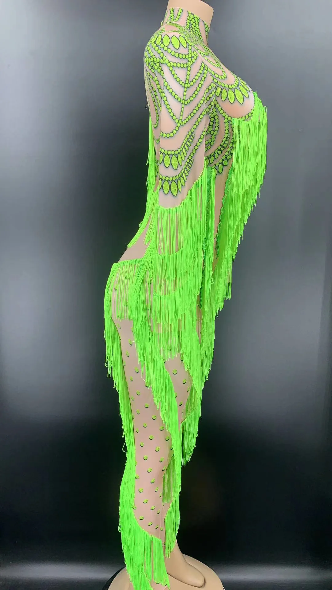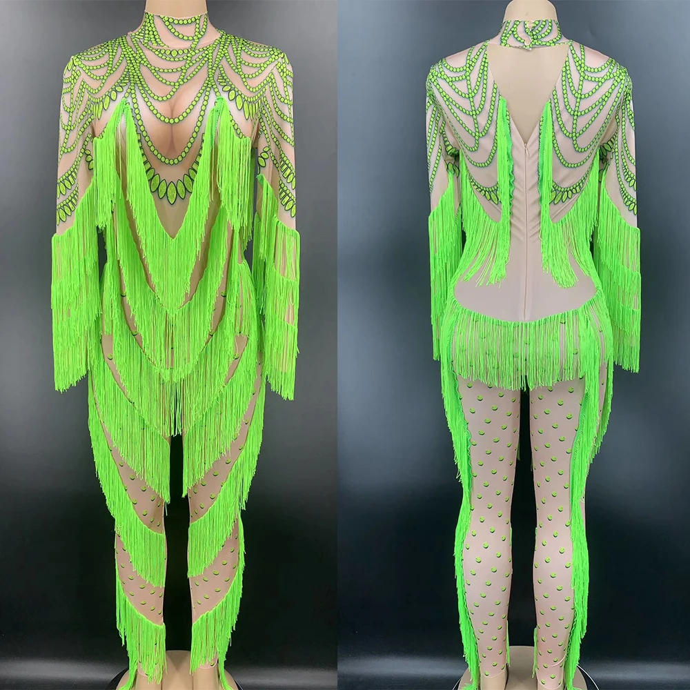Отзывы о Женские комбинезоны с длинным рукавом флуоресцентные зеленые кисточками узкие