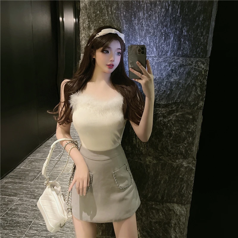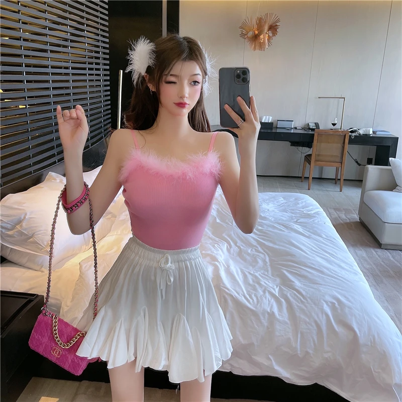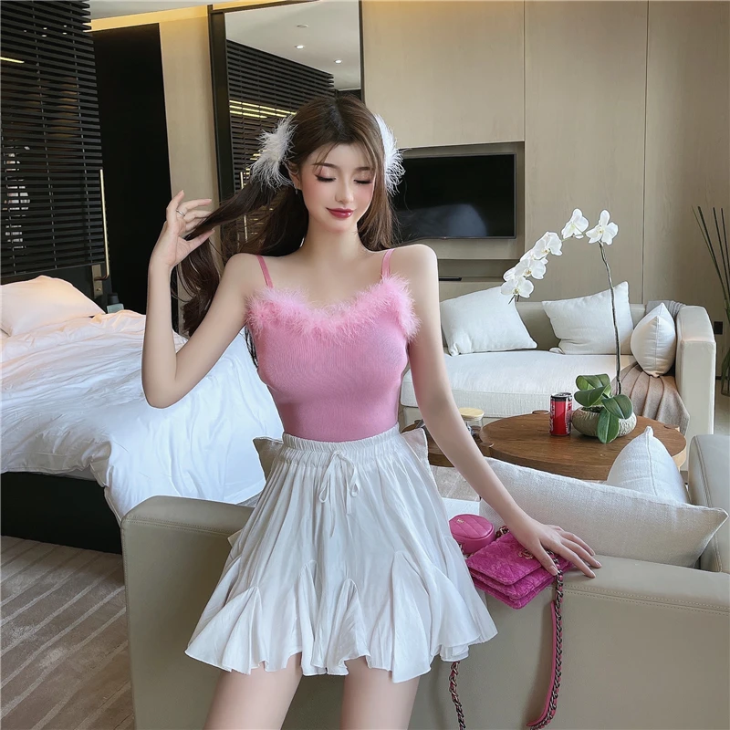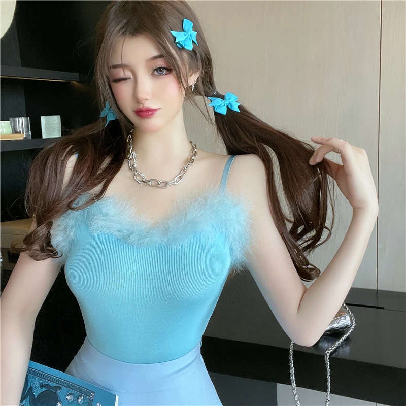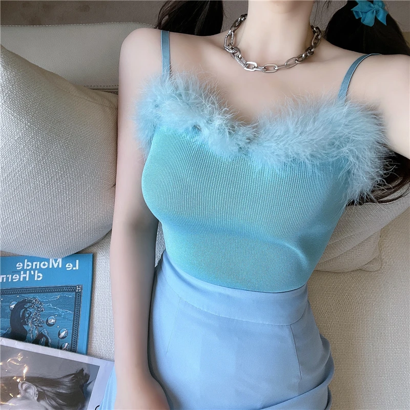 Отзывы о Реальная цена 2021 лето новый плюшевый тонкий женский топ с нижним ремешком жилет