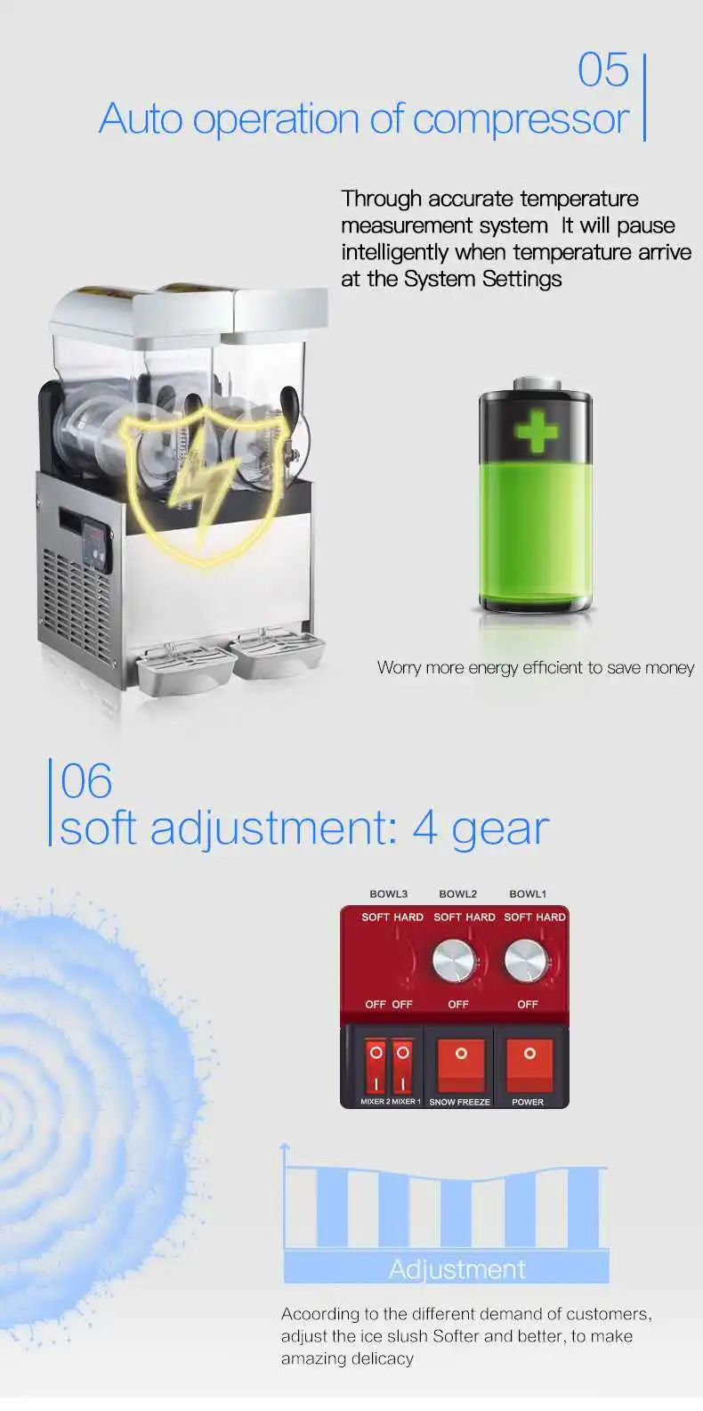 3, использование машины, которая может производить холодные продукты снега, но также производство холодного напитка сок 4, разнообразные: в производстве магнитного привода снега машины в то же время, держать процесс улучшения поставок, качества и надежной механической передачи снега машины Использование: смузи, молочные коктейли, фруктовый сок