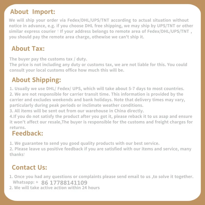 Пожалуйста, оставьте нам свой запрос перед тем, как вы разместите свой заказ, или мы отправим товар с частотой 50 Гц