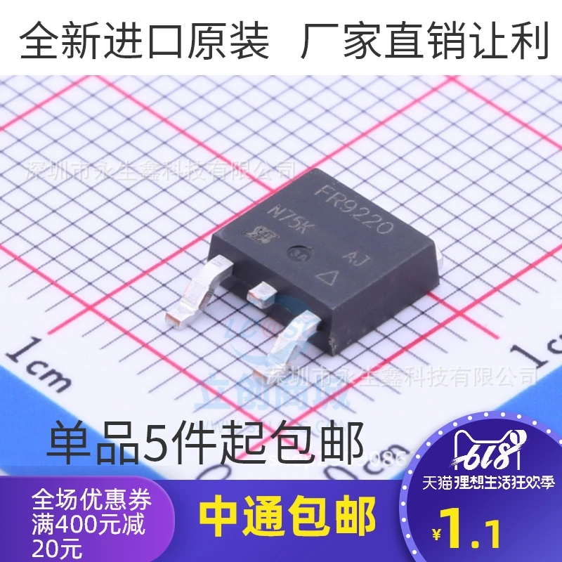 Транзистор с полевым эффектом MOS 5 шт. Новый Платиновый Fr9220 to-252 P Channel-200v-3.6a - купить