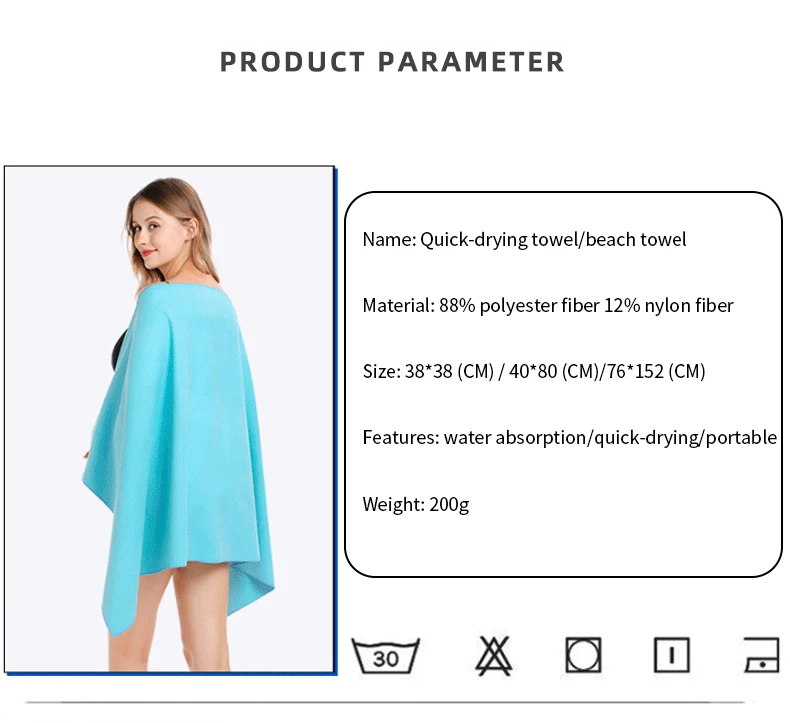 This Super Compact Microfiber Towel is made of microfibers,it is lightweight and compact,is a must for travelers, backpackers,Beach surfing,hikers, etc. Can absorb tons of water, and promote rapid evaporation. Just let the cloth erase water slowly and lightly or Only need to cover , not back and forth, and there will be a good effect. When your first use,please wash in water after 10 seconds. Machine wash warm and separately,Tumble dry low or air dry,No fabric softener,No bleach.