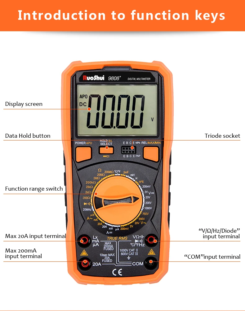 Отзывы о Цифровой мультиметр RuoShui автоматический портативный высокоточный 2000 мкФ ом