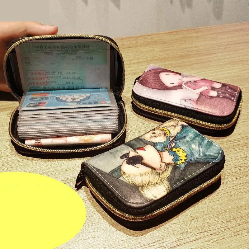 Женский кошелек для карт из искусственной кожи с милыми персонажами нулевым кошельком защитой от магнитных полей и молнией - купить