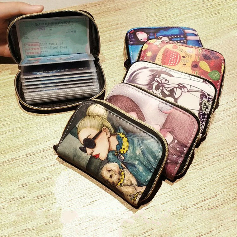 Отзывы о Женский кошелек для карт из искусственной кожи с милыми персонажами нулевым кошельком защитой от магнитных полей и молнией
