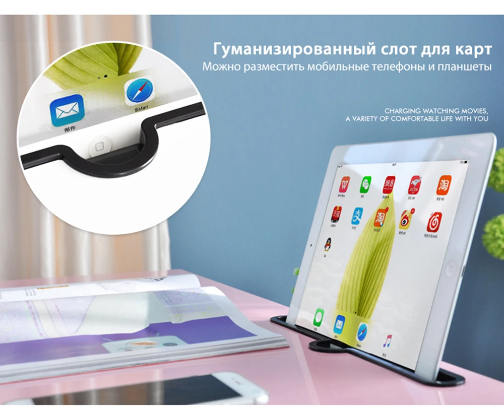Этот стол очень популярен в России. Прежде всего, он очень прост в сборке и может быть перемещен по желанию, прикроватной кровати, дивана, гостиной, даже балкона. Наиболее подходящим поводом для использования является прикроватная тумбочка. Вы можете использовать этот стол для работы, просмотра фильмов и завтрака и т. д., все потрясающе. Если вы считаете, что высота не подходит, вы можете настроить ее на удобную высоту. Когда вы больше не используете его, эту таблицу можно легко перемещать в угол, который не будет мешать вам, потому что она подвижная. Наконец, у этой таблицы есть слот для карты, вы можете поместить мобильные телефоны, планшеты, кабели для передачи данных и другие предметы