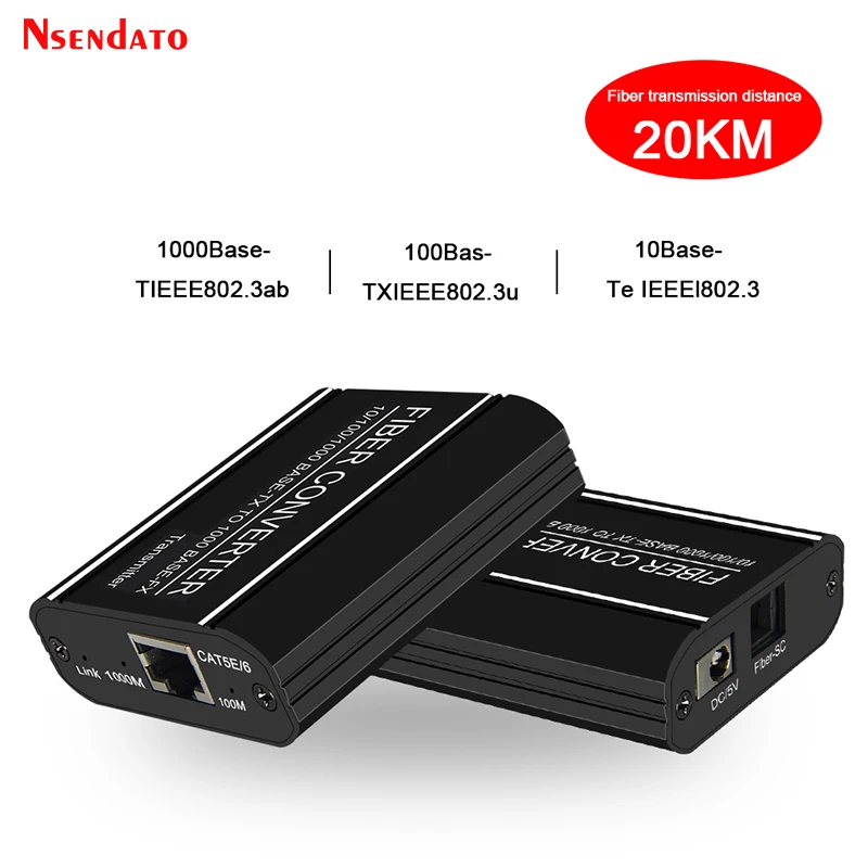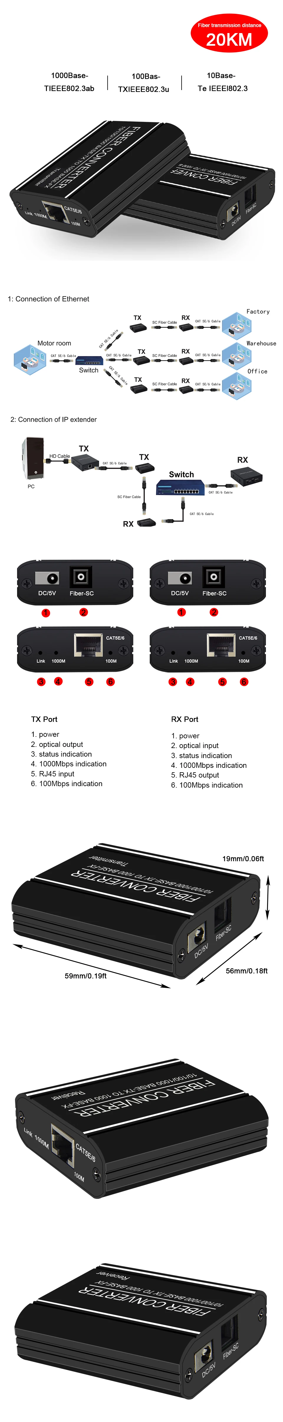 20km Transmission Optical Fiber Transmitter Receiver Transceiver 1000Mbps HD Extender Gigabit Ethernet Transfer Switch Converter