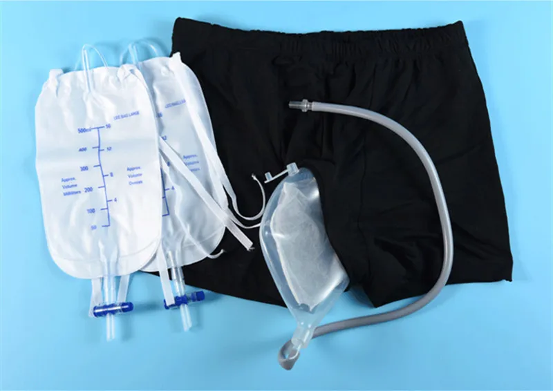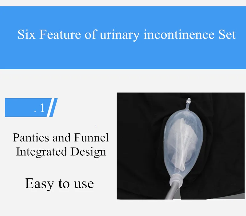 Этот продукт состоит из мочевой воронки, мочевого катетера, двух дренажных мешков, трусиков и повязки для фиксации ног.