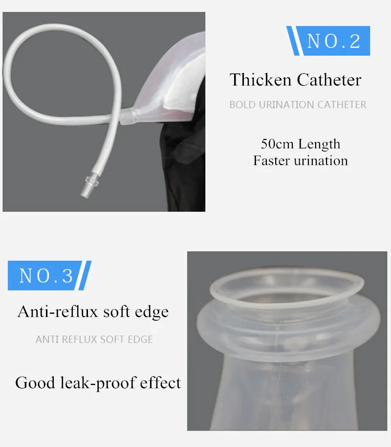 4. Силиконовая воронка мягкая и безопасная. 500 мл добавьте сливные переключатели. 2 шт. мешок для мочи. Добавьте повязку, зафиксированную на ноге.
