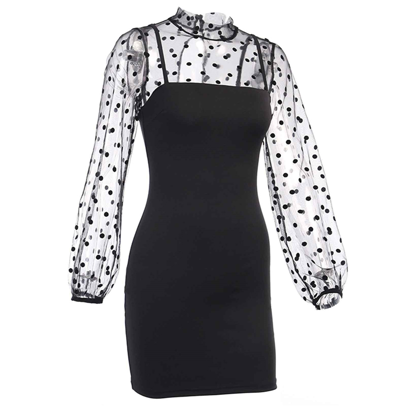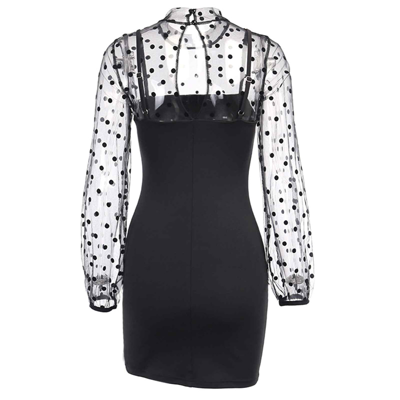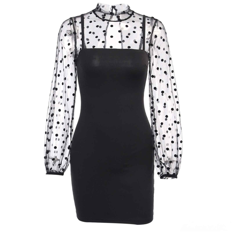 Купить Женское Сетчатое платье в горошек с круглым вырезом и вырезами на спине цельная
