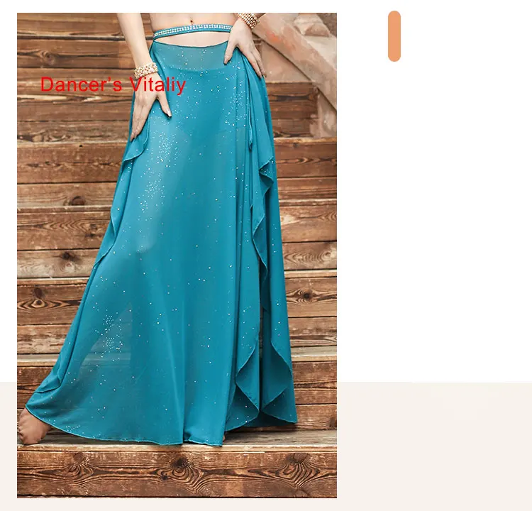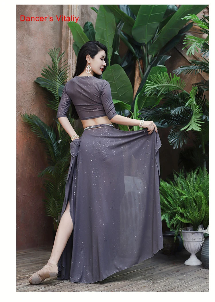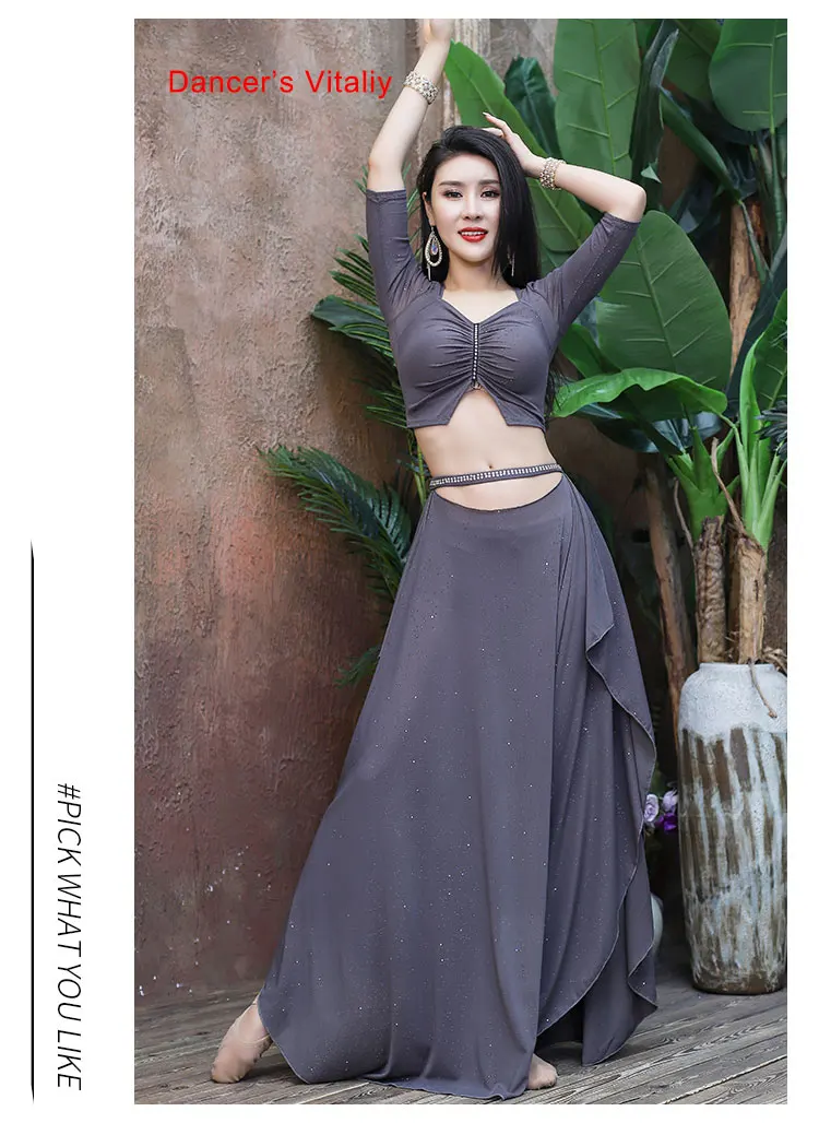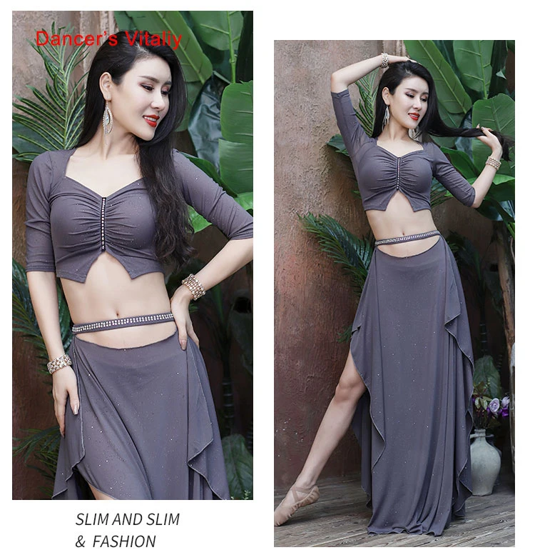 Купить Костюм для восточного танца: топ с V-образным вырезом из сетки и полурукавами, юбка с блестками, комплект одежды для женщин для репетиций и элегантных выступлений.