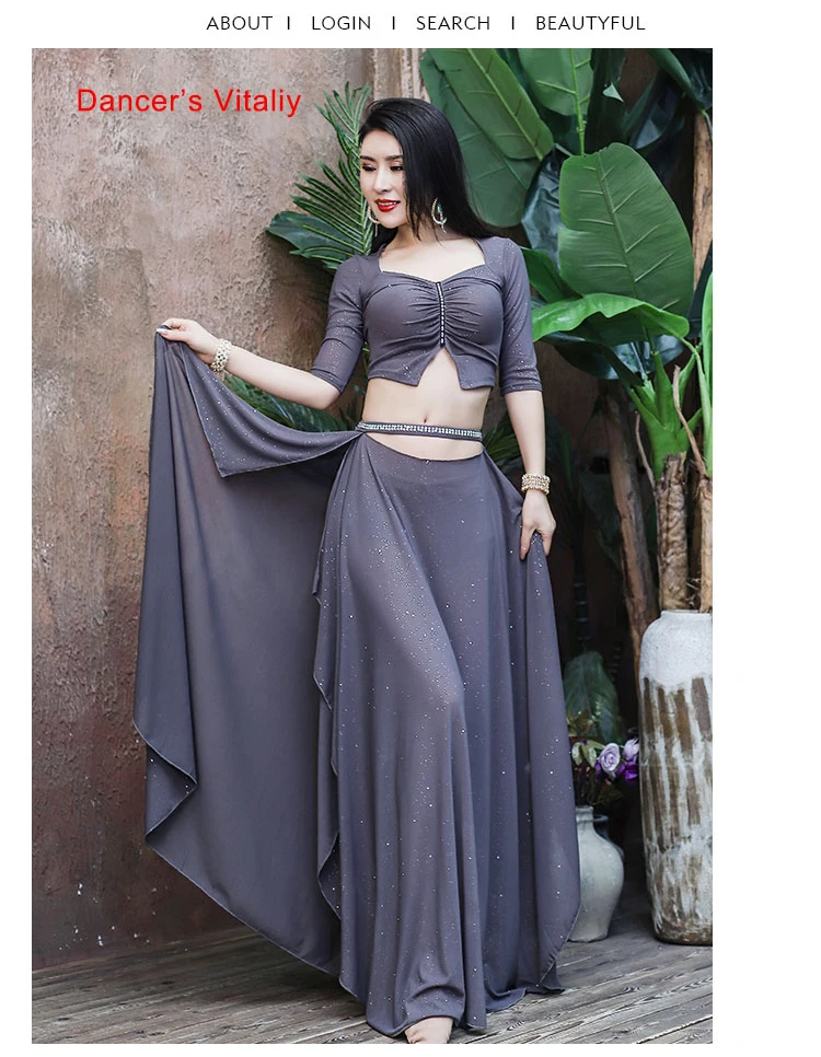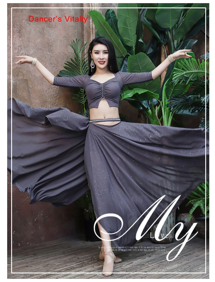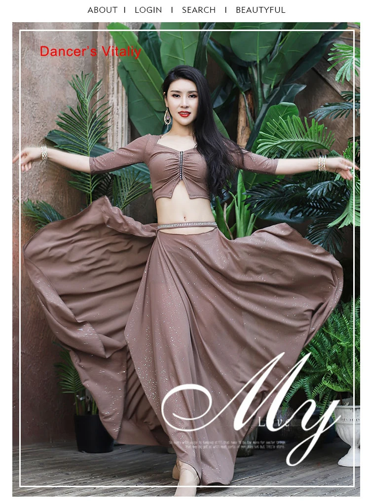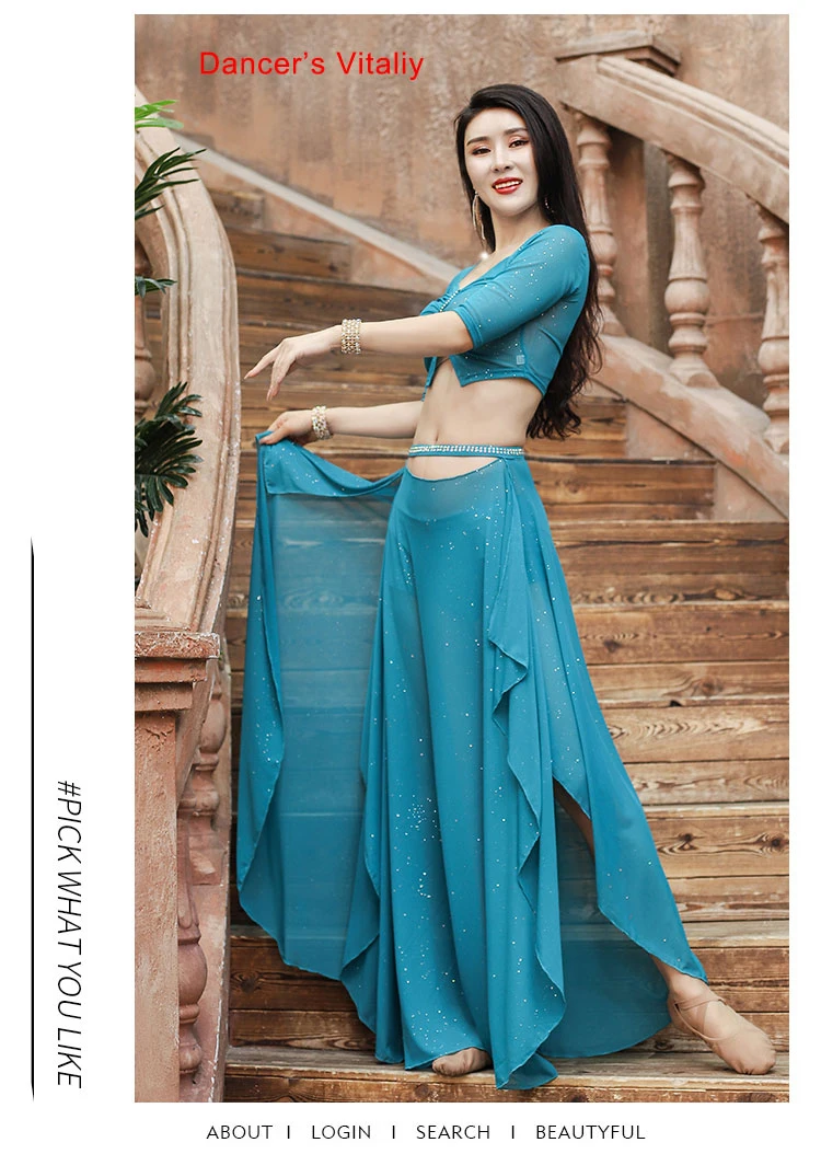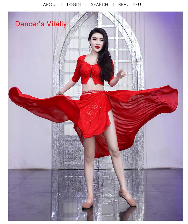 Костюм для восточного танца: топ с V-образным вырезом из сетки и полурукавами юбка блестками комплект одежды женщин репетиций элегантных выступлений - купить