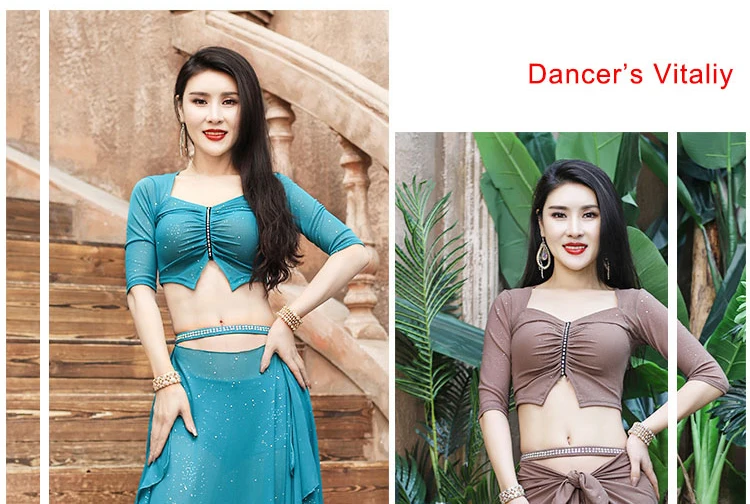 Отзывы о Костюм для восточного танца: топ с V-образным вырезом из сетки и полурукавами юбка блестками комплект одежды женщин репетиций элегантных выступлений