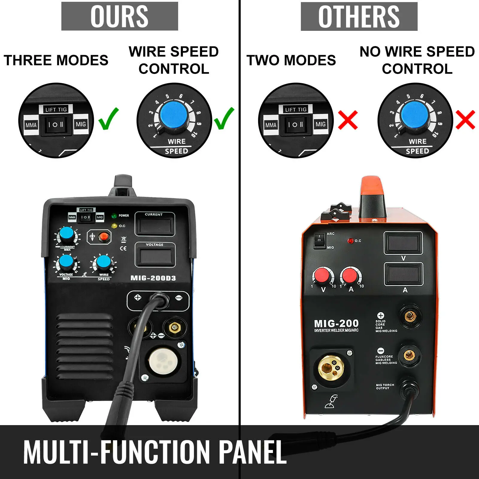 【Внутренний провод FEEDER】-высококачественный интегрированный кормушка для обеспечения плавного подачи проволоки, регулируемое сварочное напряжение и ток. Перейти с гладкой средней скоростью и мощным большим двигателем.