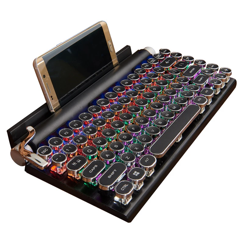 Купить Клавиатура для пишущей машинки Беспроводная Bluetooth RGB цветная подсветка ретро