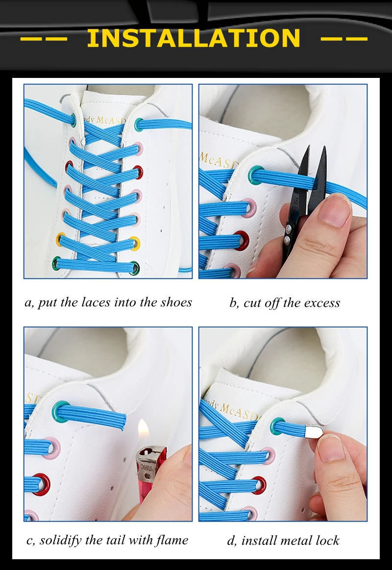 Шнурки без завязывания 1 пара плоские металлические эластичные для быстрой носки - купить