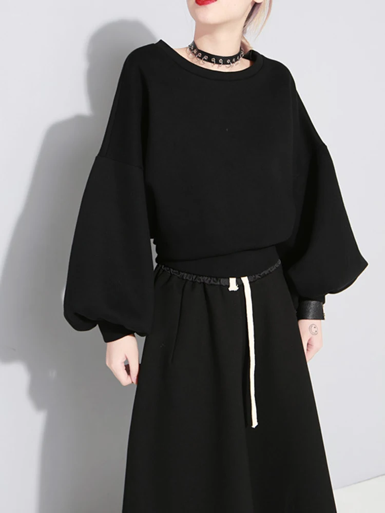 [EAM] свободный свитер с бантом сзади новинка круглый вырез длинный рукав-фонарик - купить