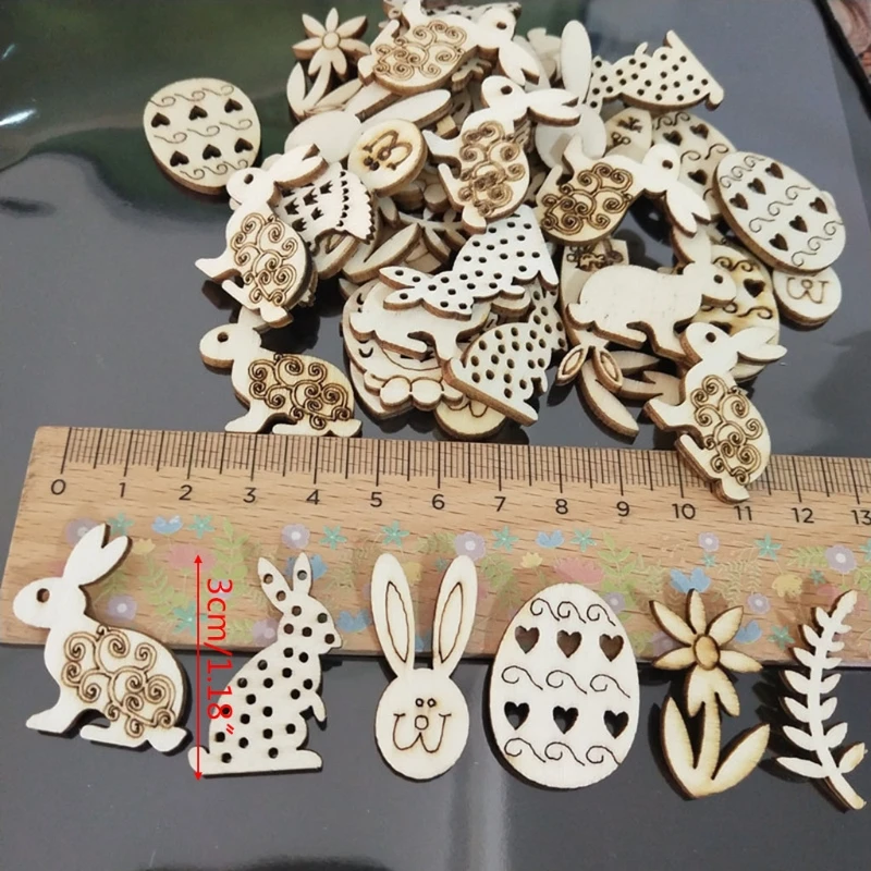 Отзывы о 100 шт. пасхальные яйца кролика деревянные чипы резные украшения Подвесные