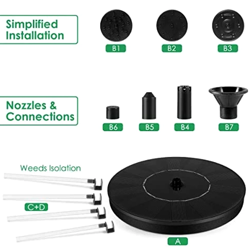 Купить Солнечный фонтанный насос 7 в/1 4 Вт водяной для птичьей ванны с насадками сада