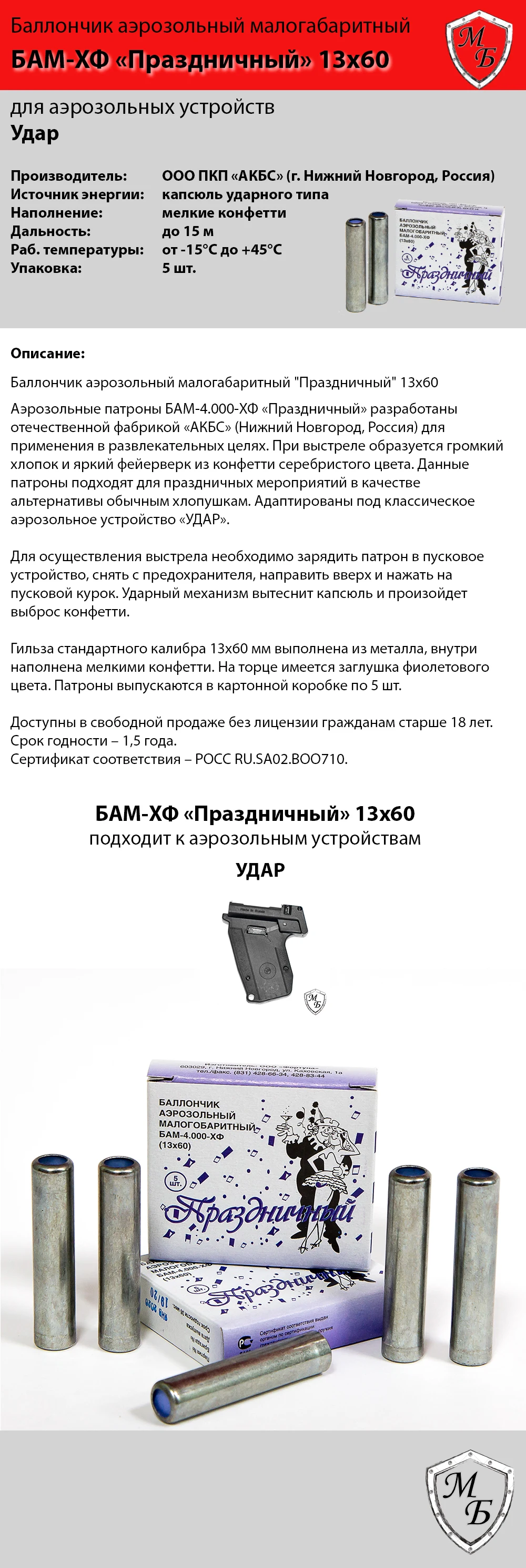 БАМ - ХФ 13x60 холостой конфети "Праздничный" (5 шт.) для "Удара" купить по - купить