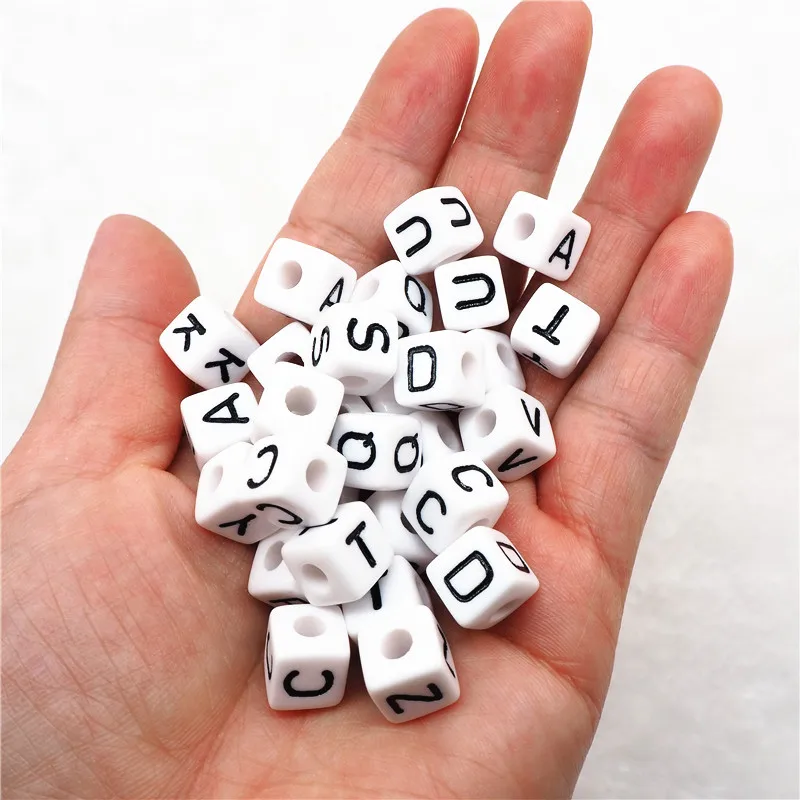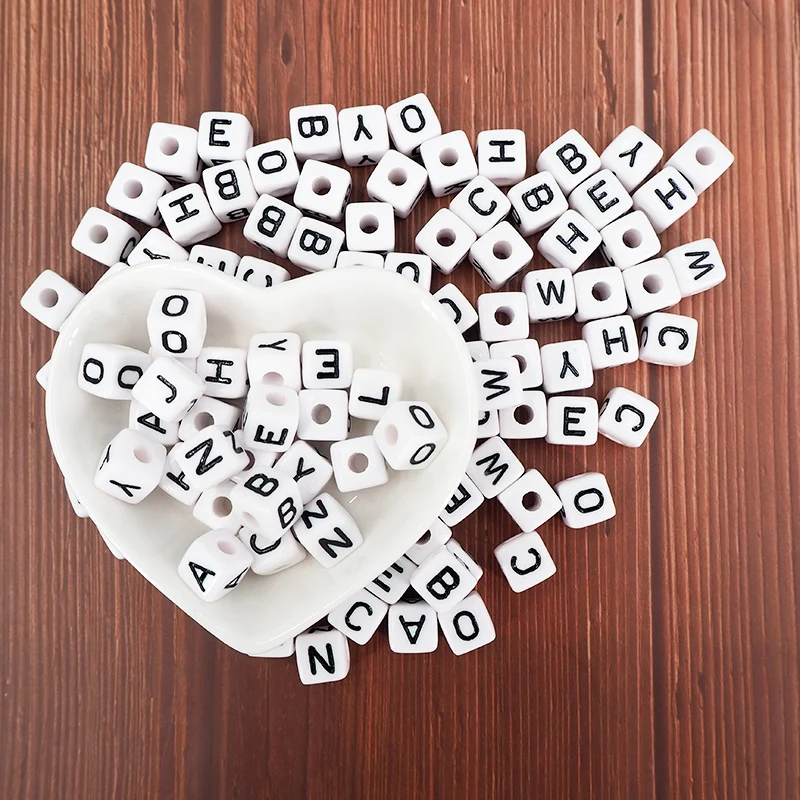 Chenkai 500 шт. 10*10 мм белый пластиковый акрил кубик алфавита искусственные бусины - купить