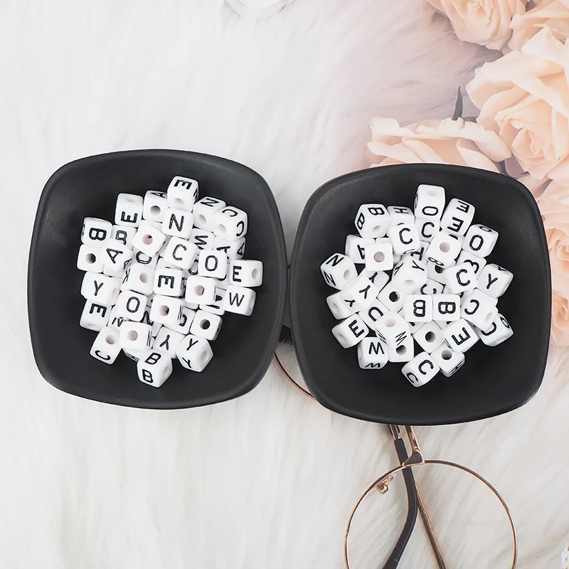 Купить Chenkai 500 шт. 10*10 мм белый пластиковый акрил кубик алфавита искусственные бусины