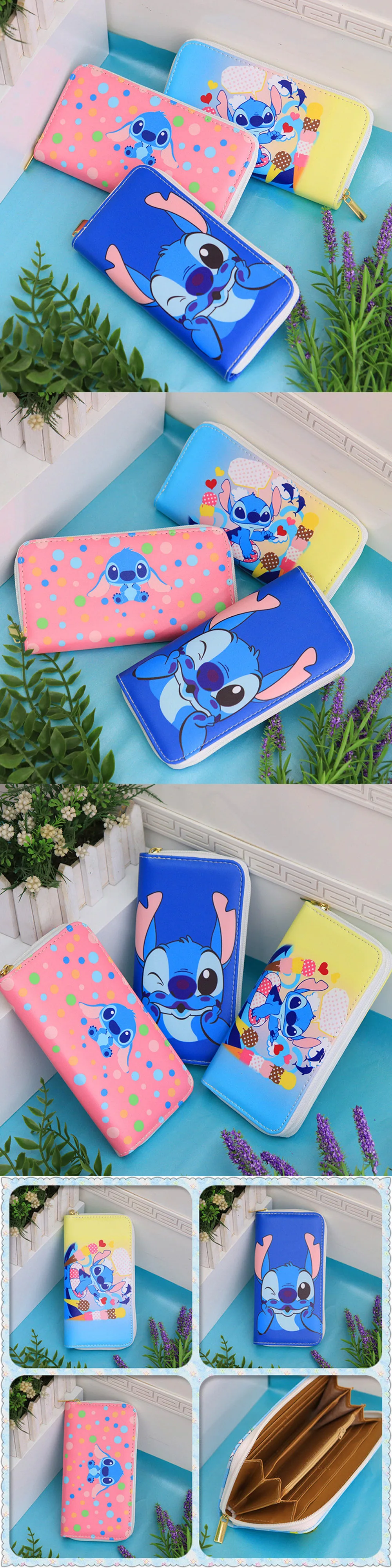 Disney, мультяшная сумка для монет, милый женский длинный кошелек, аниме Лило и Стич, искусственная кожа, для девочек и мальчиков, с отделением для карт, детский клатч