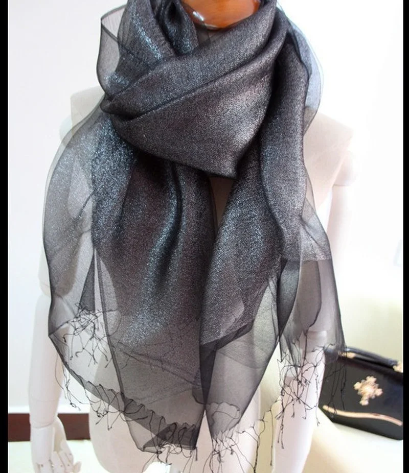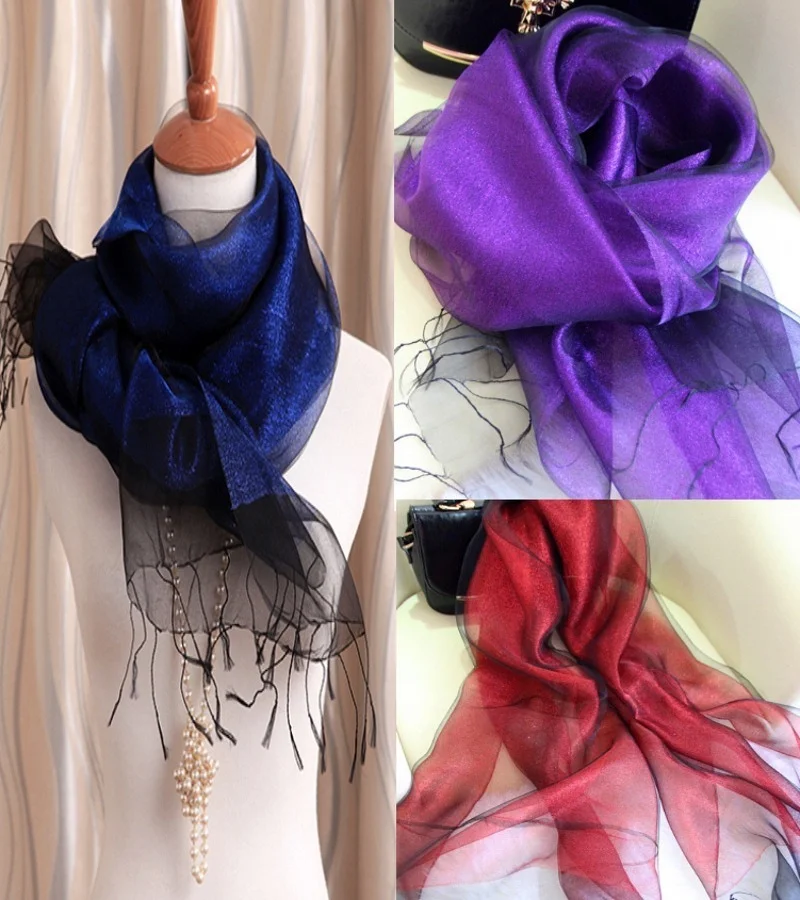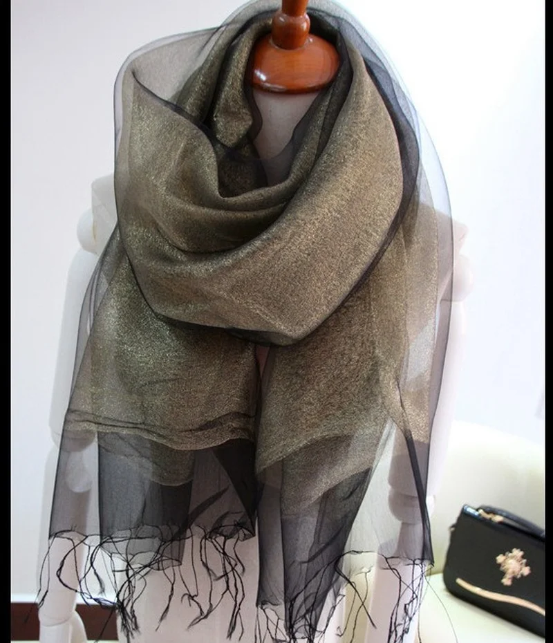 Отзывы о Женский золотистый шелковый шарф Элегантная двухслойная Солнцезащитная большая
