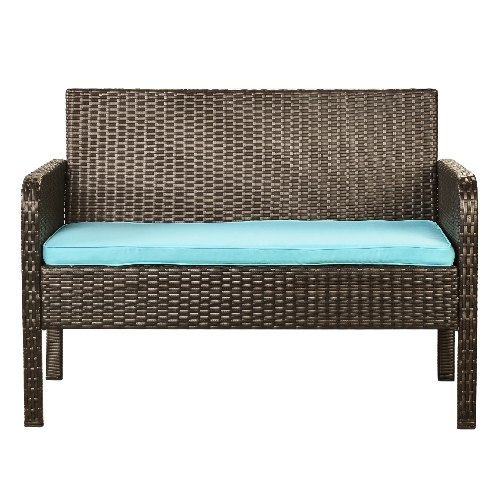 Купить 4-х шт. набор мебели для патио снаружи из ротангового дивана включает 1 2-х кресло кофейный стол Бежевые/Синие подушки