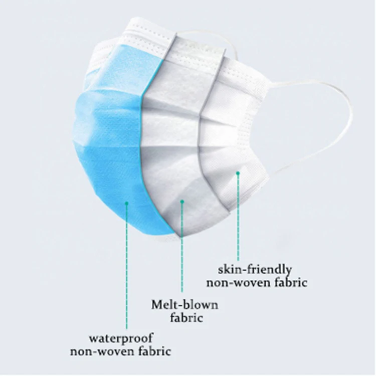 Одноразовая маска с петлями для ушей 3-слойная дышащая лица из нетканого - купить