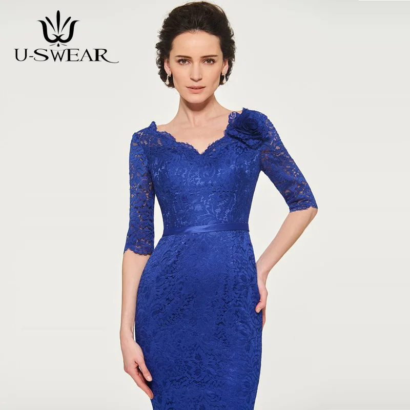 Платье для матери невесты с V-образным вырезом и коротким рукавом кружевное - купить
