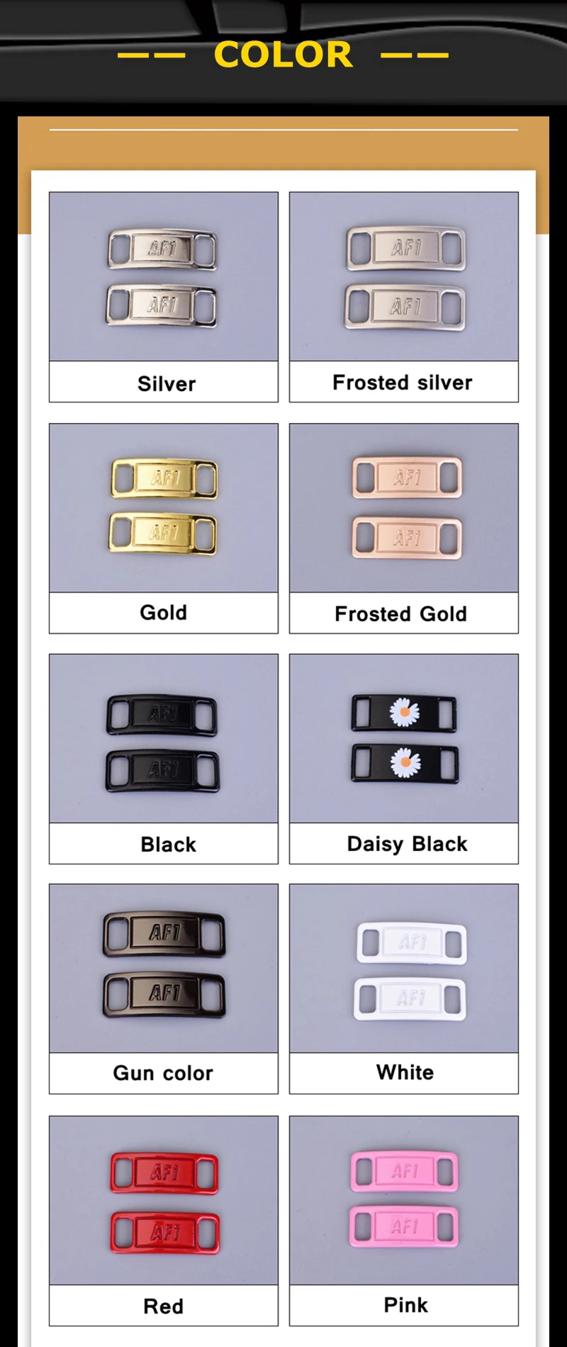 Добро пожаловать в наш магазин Дорогие друзья: При размещении заказа, пожалуйста, обратите внимание на следующие моменты! Название: Пряжка для шнурков Материал: высококачественный металл Цвет: свободный выбор нескольких цветов Транспорт: отправлено в течение 48 часов Упаковка: 2 шт. пряжки шнурка (Вы также можете добавить примечание к заказу, чтобы сообщить нам свои вопросы и требования)