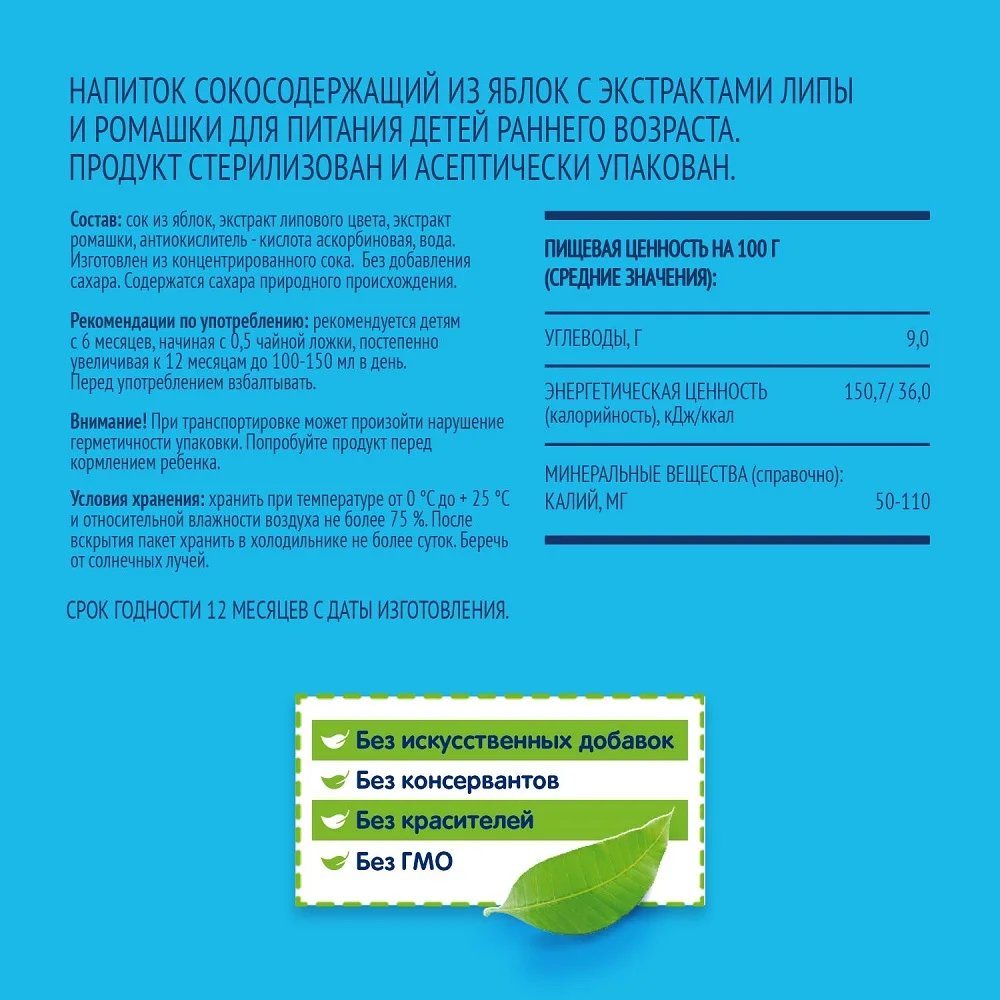 Напиток сокосодержащий ФрутоНяня яблоко экстракт липы и ромашки с 6 мес. 0 2л - - купить