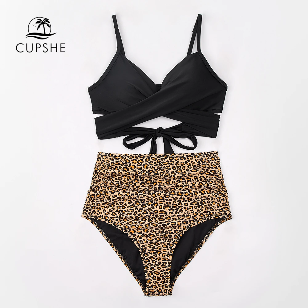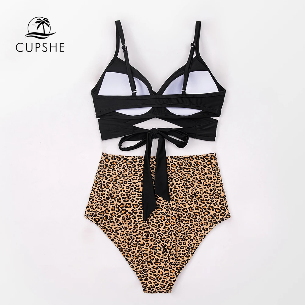 Купить Женский купальник-бикини CUPSHE черный леопардовый купальник на шнуровке с высокой